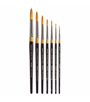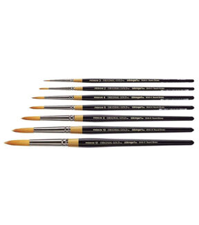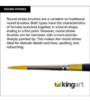 KINGART Original Gold 9040 Series Round Comma Stroke artist brushes are premium quality Golden Taklon paint brushes for use with acrylics, watercolors and oils. The Round Stroke paint brushes come with a full, long belly that doesn't taper to a fine point as drastically as regular Rounds or Max Rounds. The variation is the shaping of the Round Comma Stroke with the point coming from the center-most hairs, which makes it ideally suited for stroke work. Original Gold Round Comma Stroke is best suited for creating consistent, long continuous strokes.