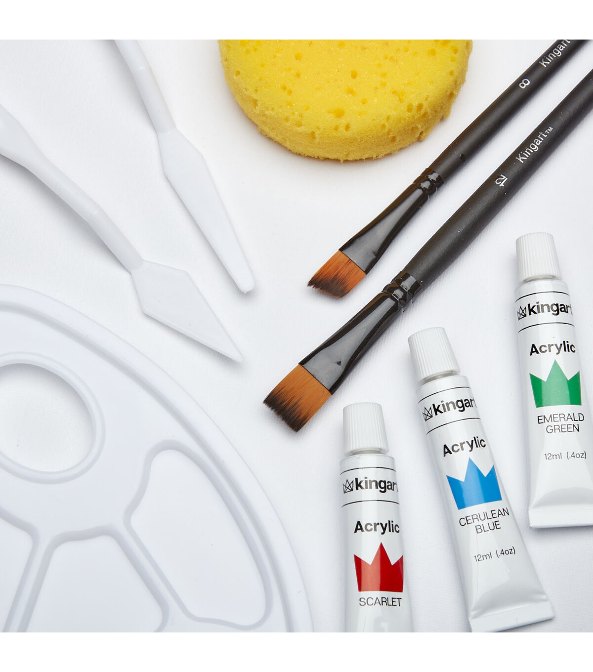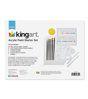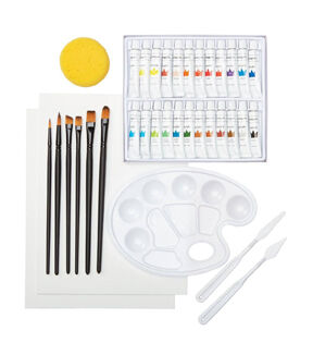 - This art set contains 24 acrylic paints, 6 paint brushes, 2 canvas panels in 9*12',1 plastic palette, 2 painting knives and 1 sponge.