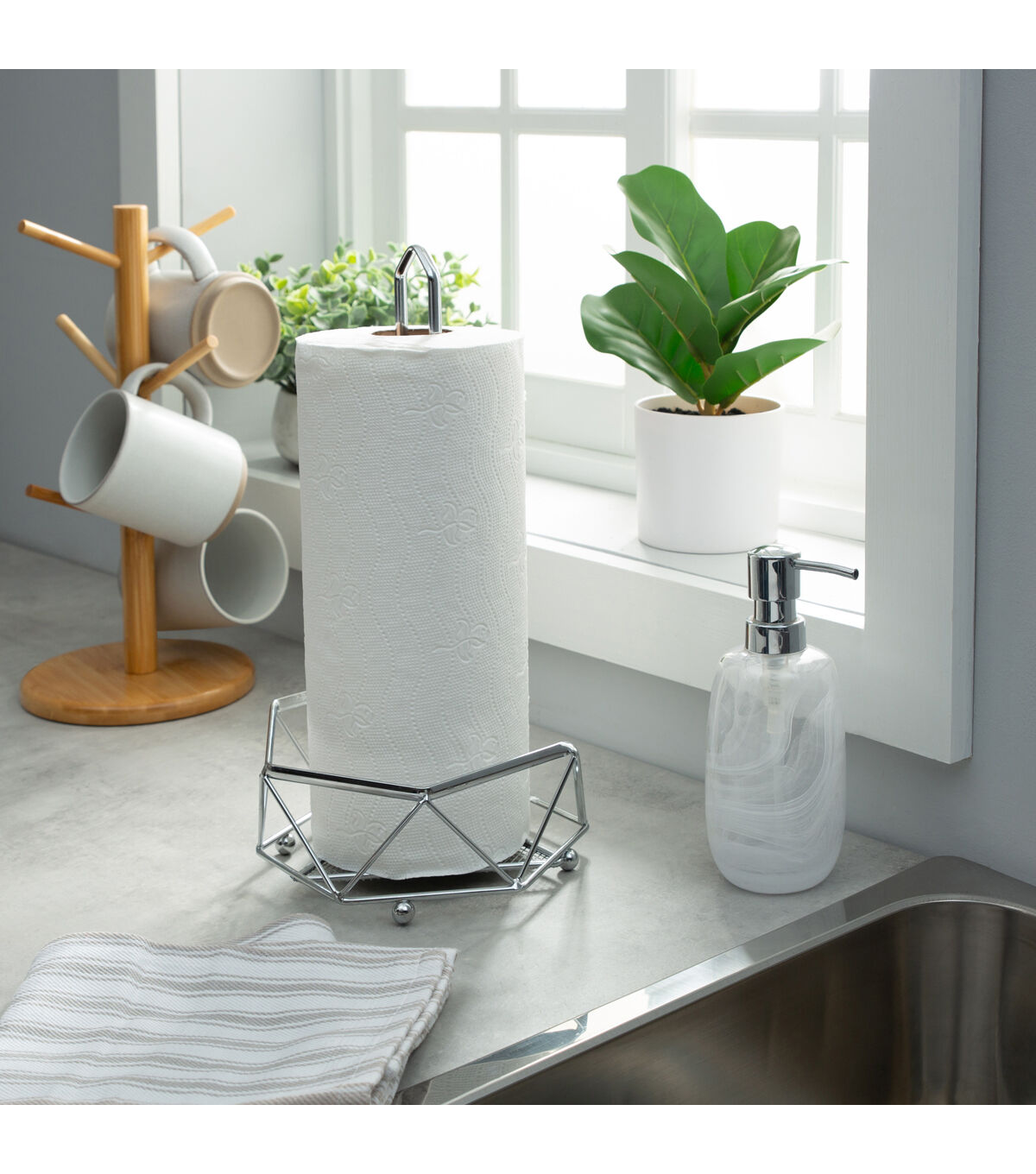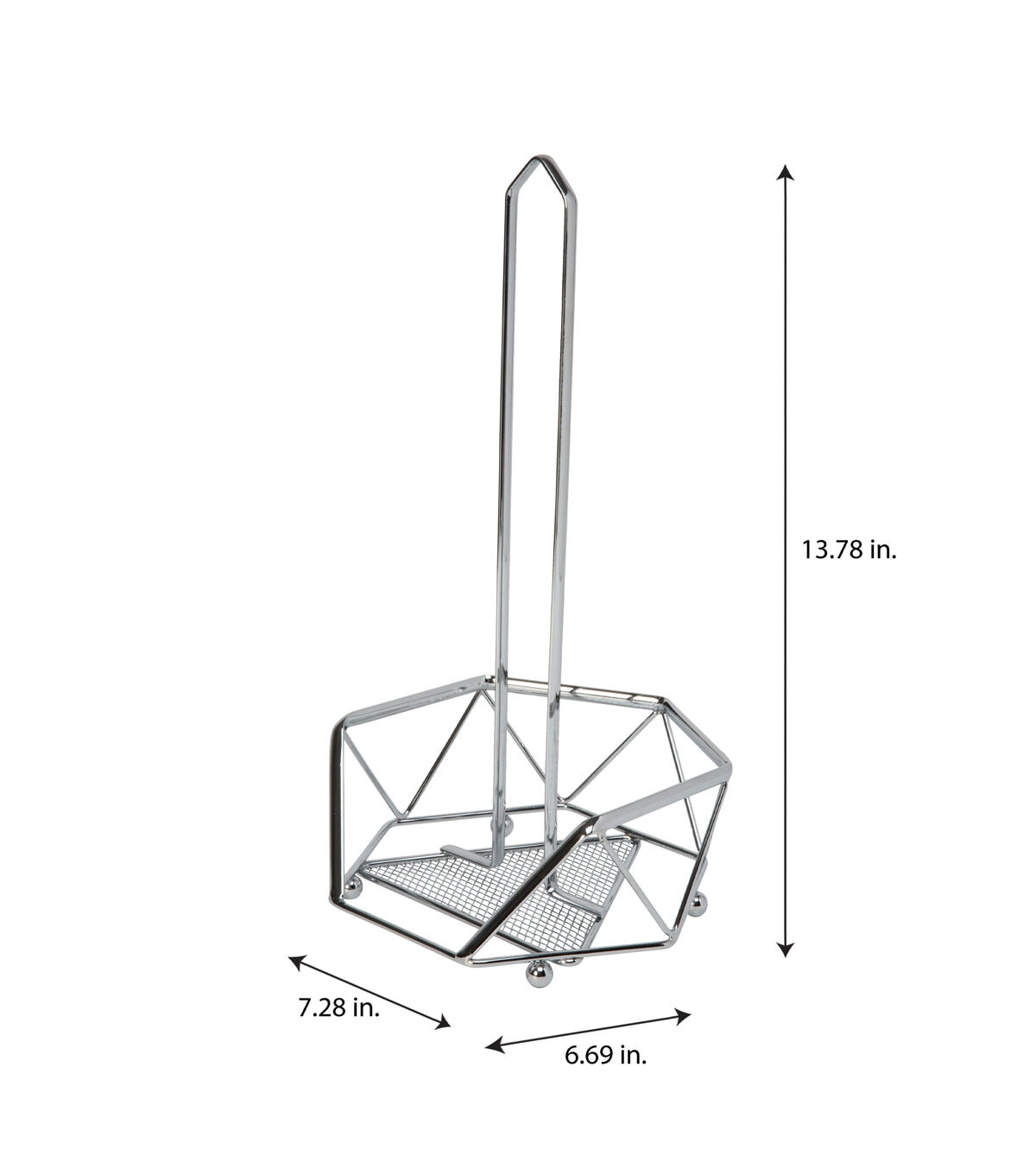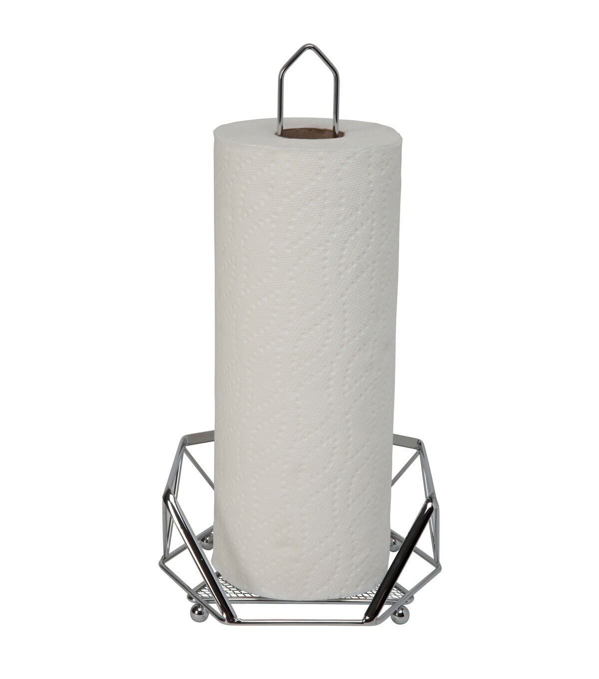 Access your paper towels with the convenient and stylish Kitchen Details paper towel holder. Holding 1 standard paper towel roll, you can easily pull and tear one paper towel at a time. The raised base keeps the roll lifted and away from the countertop, keeping it dry and in place. The durable iron frame construction and rust resistant material makes this item long lasting. Keep your countertop stylish with this sleek design.