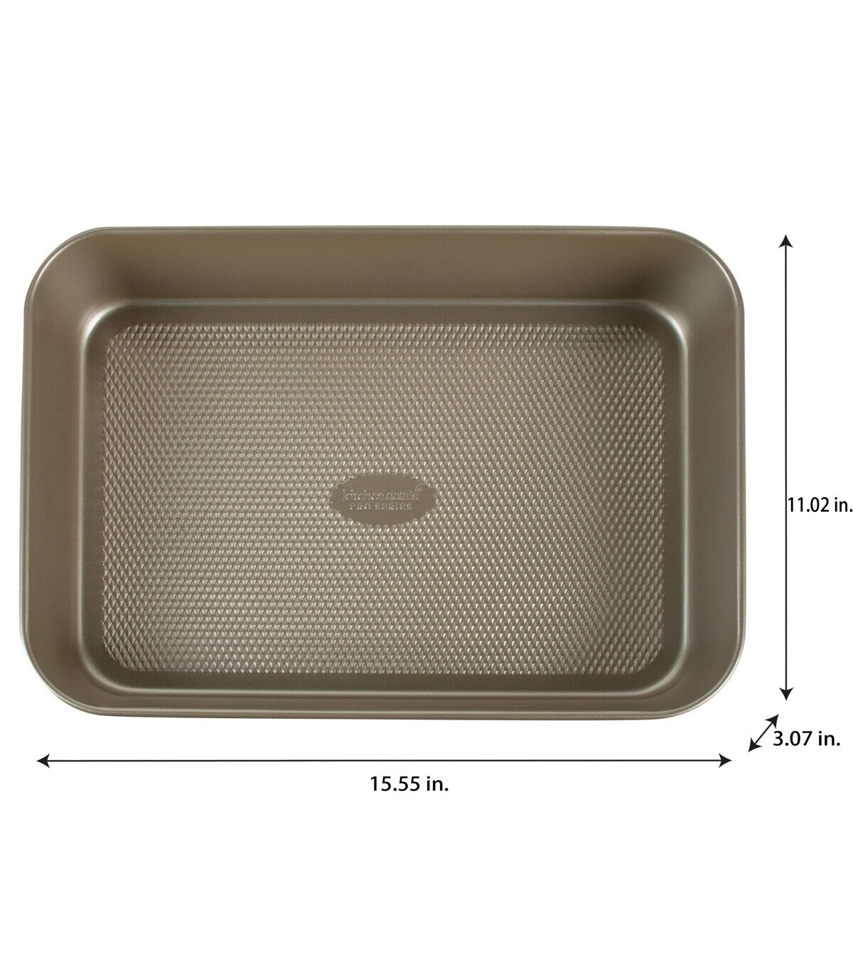 The Kitchen Details Pro Series Deep Roasting Pan is perfect for all baking needs. The multi-purpose pan is great for baking sheet cakes, roasting chicken or turkey, or so much more. This pan is made of durable carbon steel for long lasting use. The textured diamond base of the pan conducts heat evenly for the best cooking results. The nonstick surface makes for an easy release and is also easy to clean. There is no need for cooking oil or sprays. This baking pan is oven safe up to 500 degrees Fahrenheit. The perfect pan for your kitchen because it can be used for anything.