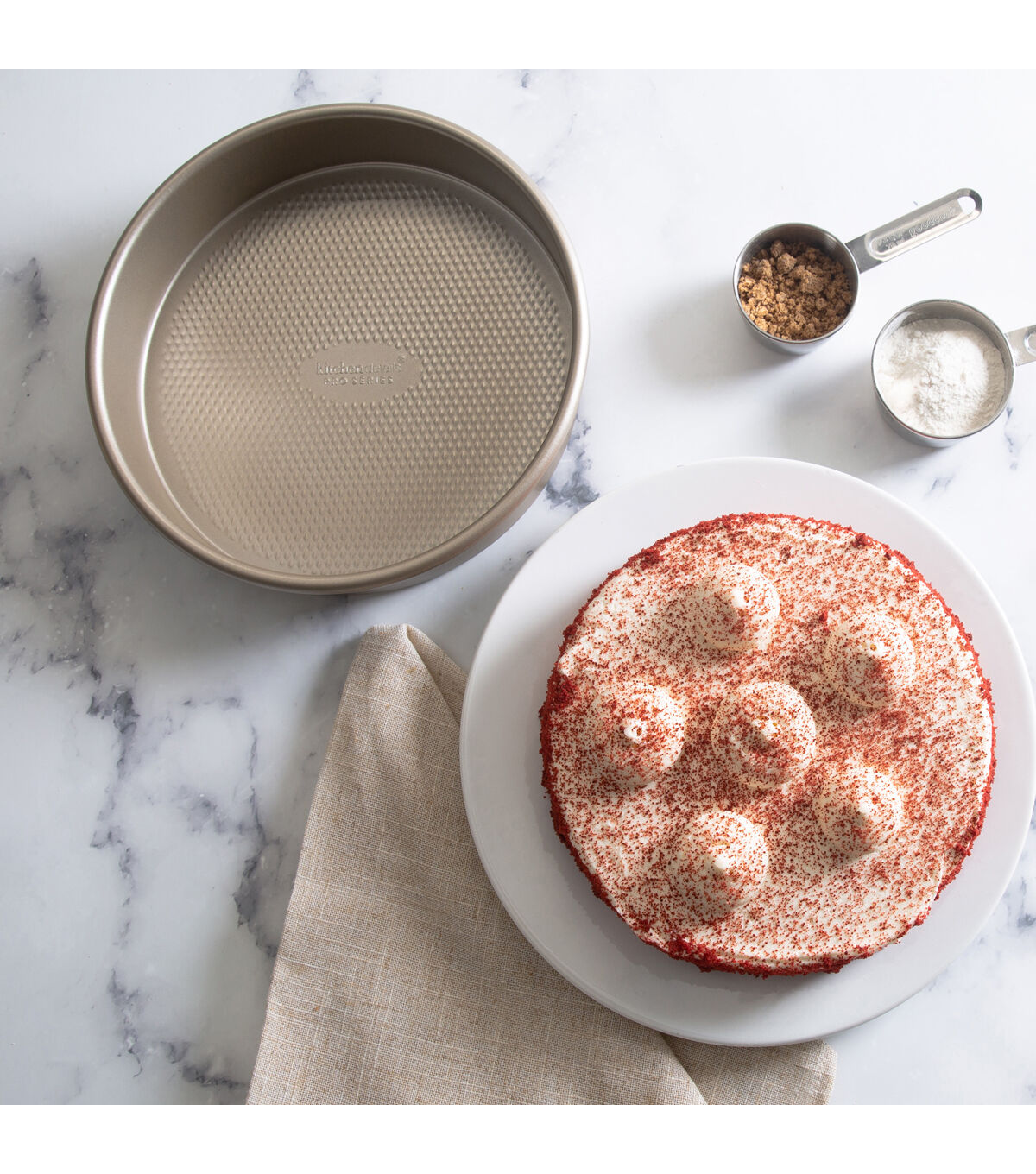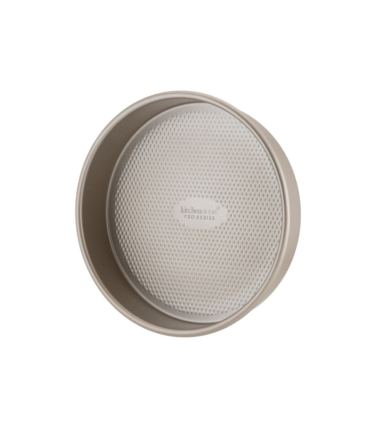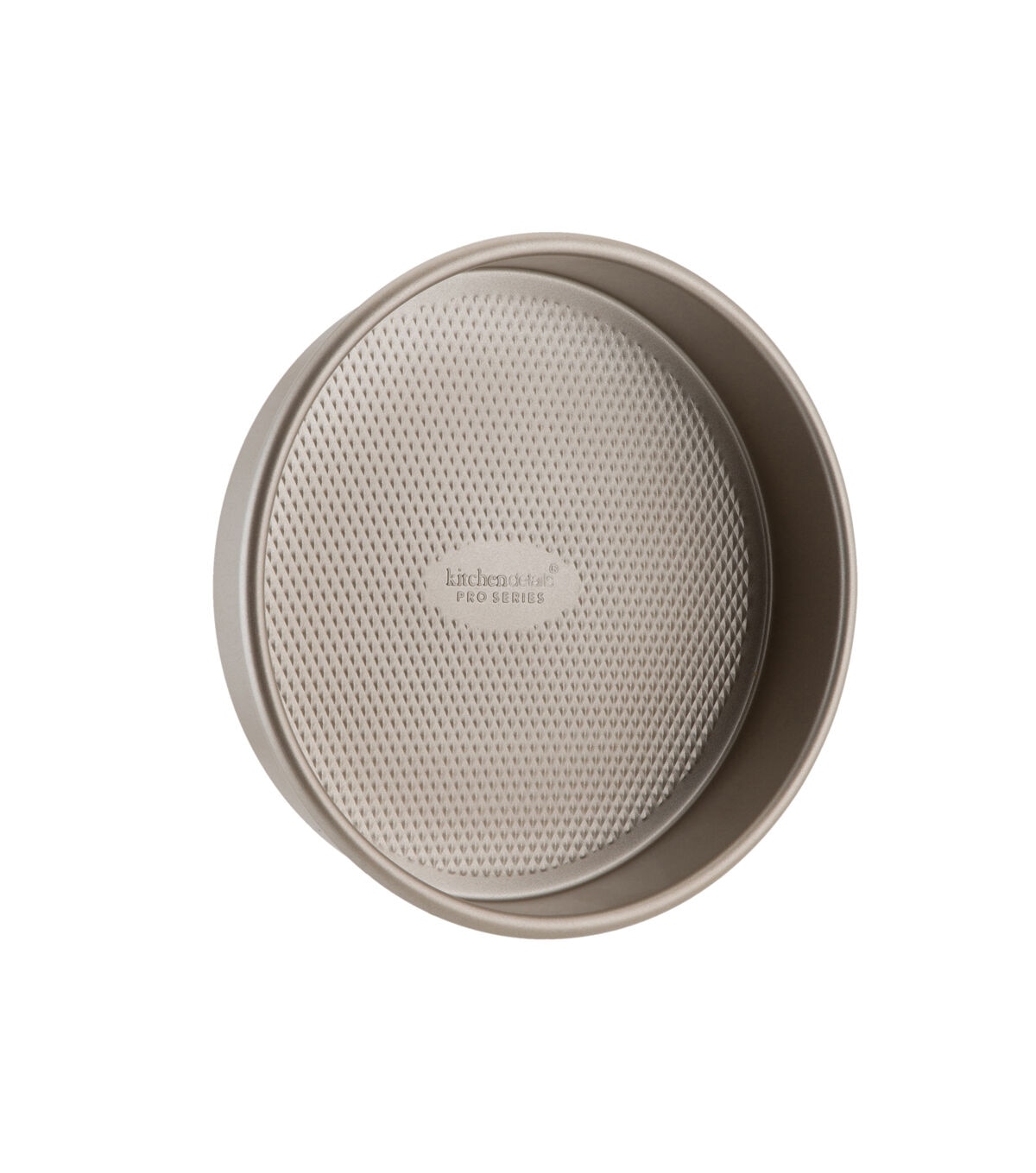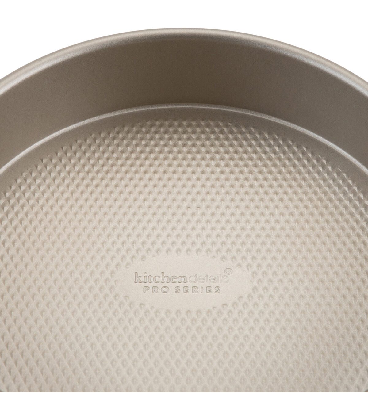 The Kitchen Details Pro Series 9.5” Round Cake Pan is great for making the perfect cake. This pan is made of durable carbon steel for long lasting use. The textured diamond base of the pan conducts heat evenly for the best cooking results. The cake will cook golden and evenly in the oven. The nonstick surface makes for an easy release and is also easy to clean. This baking pan is oven safe up to 500 degrees Fahrenheit. This pan is also good for making other dishes such as cinnamon rolls and bread. This is the perfect multi-use round pan. This Kitchen Details Cake Pan is the best pan for your kitchen.