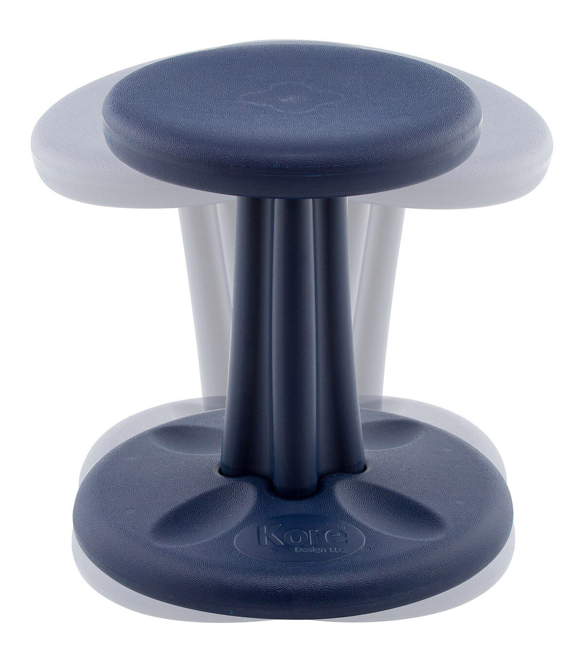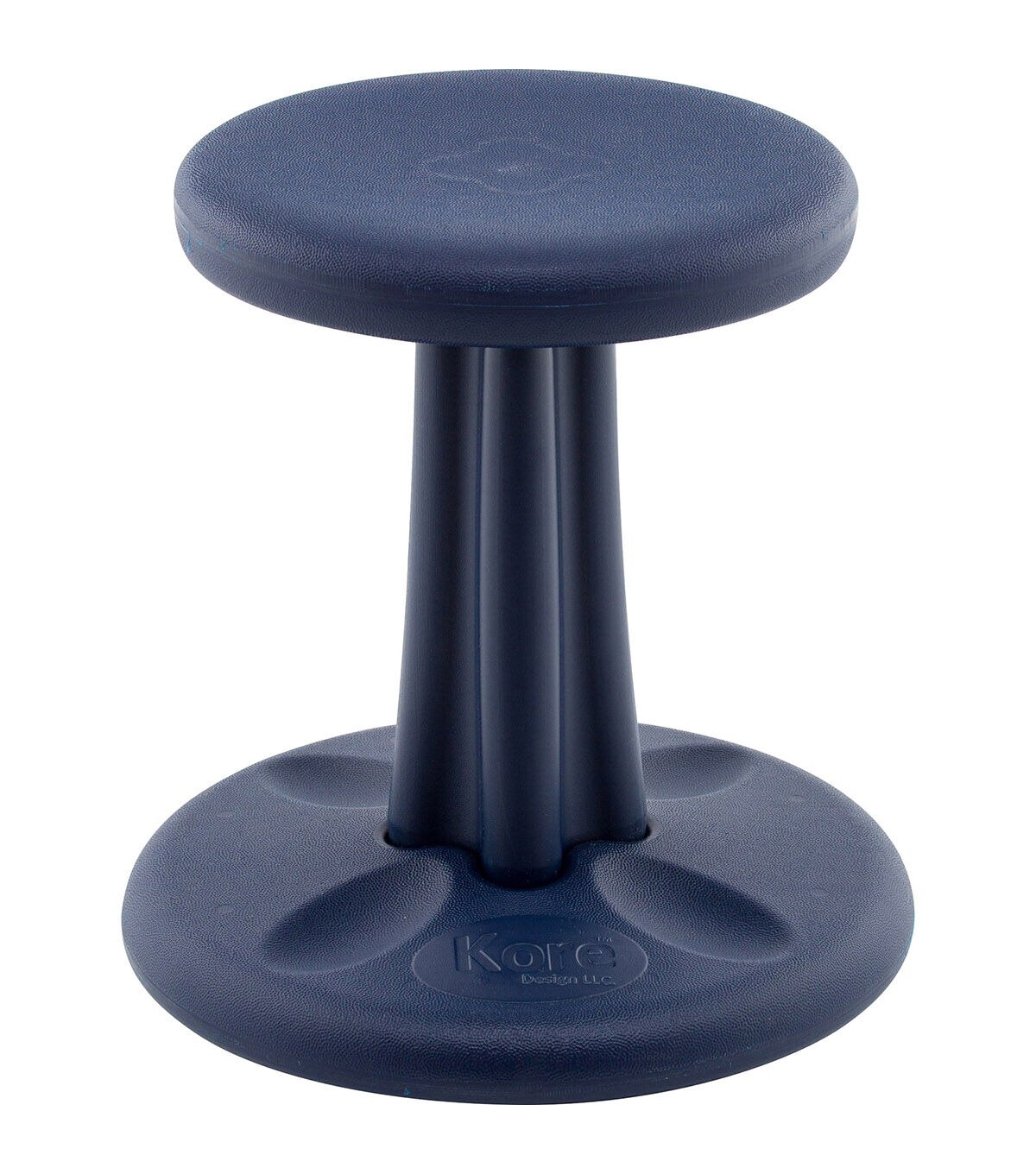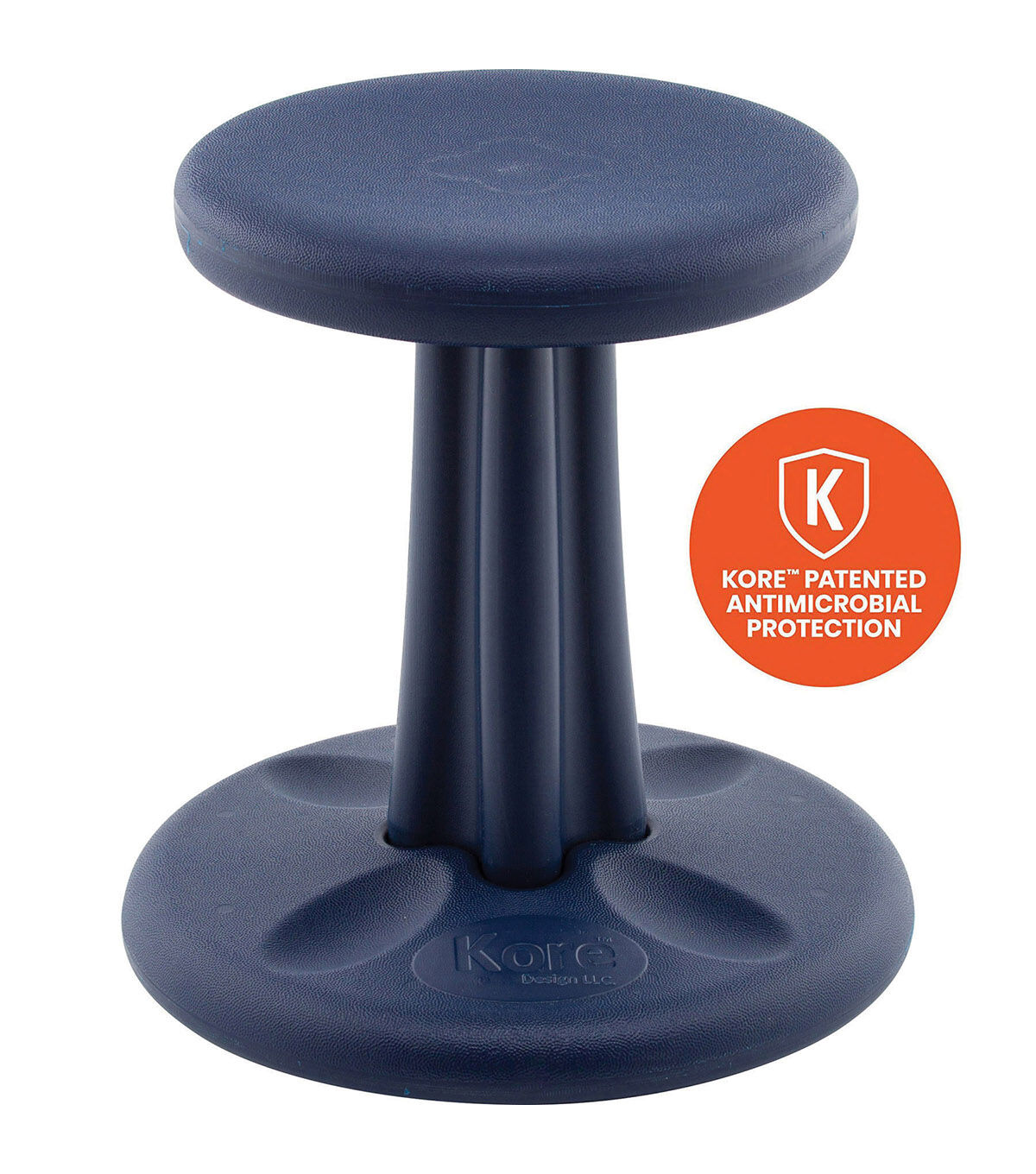 Ergonomically designed, the Kore Wobble Chair transforms the conventional boring seat into a playground for your child's imagination. The innovative Kore Wobble Chair encourages active sitting and allows one's knees, hips and back to find comfortable and ever-changing positions. Dimensions: 11" diameter seat, 13.75" diameter base, 14" height. Made of durable and recyclable HDPE #2 plastic. Max load weight of 275 lbs. For ages 5-8 or height of 42"-47". • Homework, reading, drawing, eating and video or board games are no longer sedentary activities. • Ideal for children of all ages, sizes and heights. • Provides an outlet for all high-energy children. • Perfect design for special needs students with ADD, ADHD, and autism. The Kore Wobble Chair has proven to increase secondary focus in the classroom. • Patented anti-roll safety ring on base prevents tip-overs and falls. • Gentle-rounded, stable base moves with child and rests naturally upright. • Patented textured design on seat and base to prevent slips; no rubberized bottoms because it holds dirt that causes scratches and scuffles to school floors. • Friction grips to easily assemble or disassemble; also saves storage space when not in use.