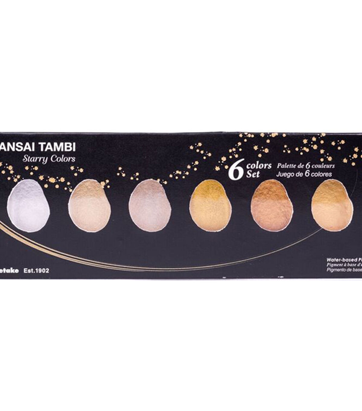 Design lovely calligraphy, illustrations, brush lettering, and other projects, using this Kuretake Gansai Tambi Color Set-Starry Colors. The pack contains six, water-based pigment colors that come in assorted starry shades. Each watercolor paint block comes in an individual tray, which you can remove from the palette for use. Conforms to ASTM D4236.