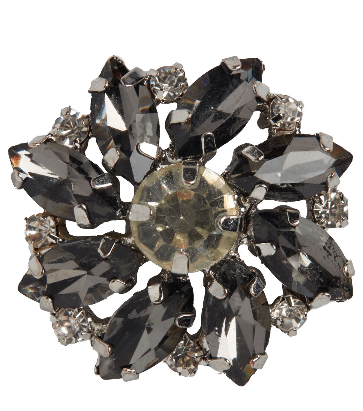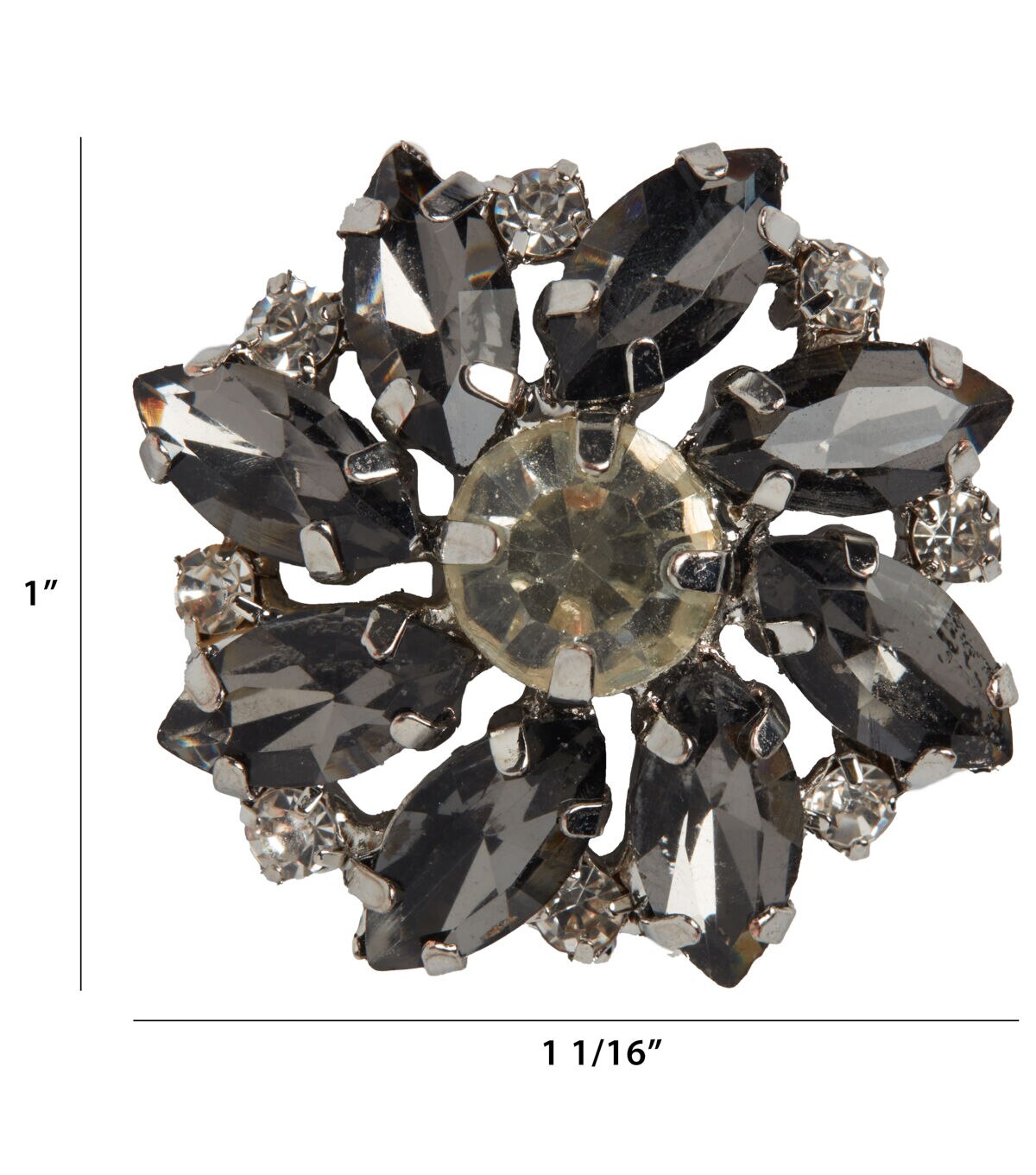 Exquisitely crafted, the La Mode Flower Shank Button - Gray will add style to your handmade creations. This button resembles a flower and is studded with faceted stones in lovely shades. It will look great on skirts, shirts, tops and dresses. You can also stitch it onto a fabric tote to elevate its look.