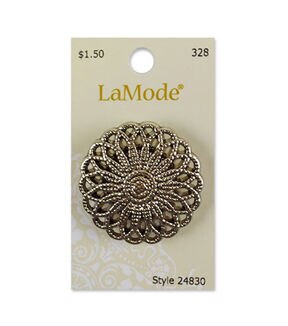 Lend a dash of visual charm to your sewing projects with the La Mode Antique Silver Shank. This button, sporting an antique silver tone, flaunts a gorgeous design and cutout pattern. It will make a lovely addition to your coats, jackets, handmade shirts, dresses and more. You can also use it to adorn handmade bags and wallets.Brand: La Mode Collection: Apparel Buttons Size: 1.5 inches