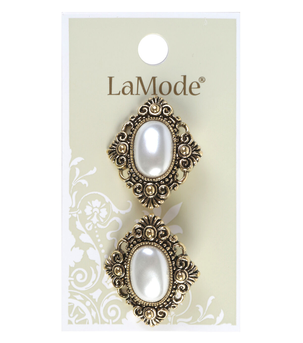 Add dimension and visual interest to your apparel projects with the La Mode Antique Gold & White Pearl Shank Buttons. These shank buttons sport a lovely antique gold tone with an embossed pattern along the edge and are adorned with a pearl in the center. You can also add them to costumes, bags and more.