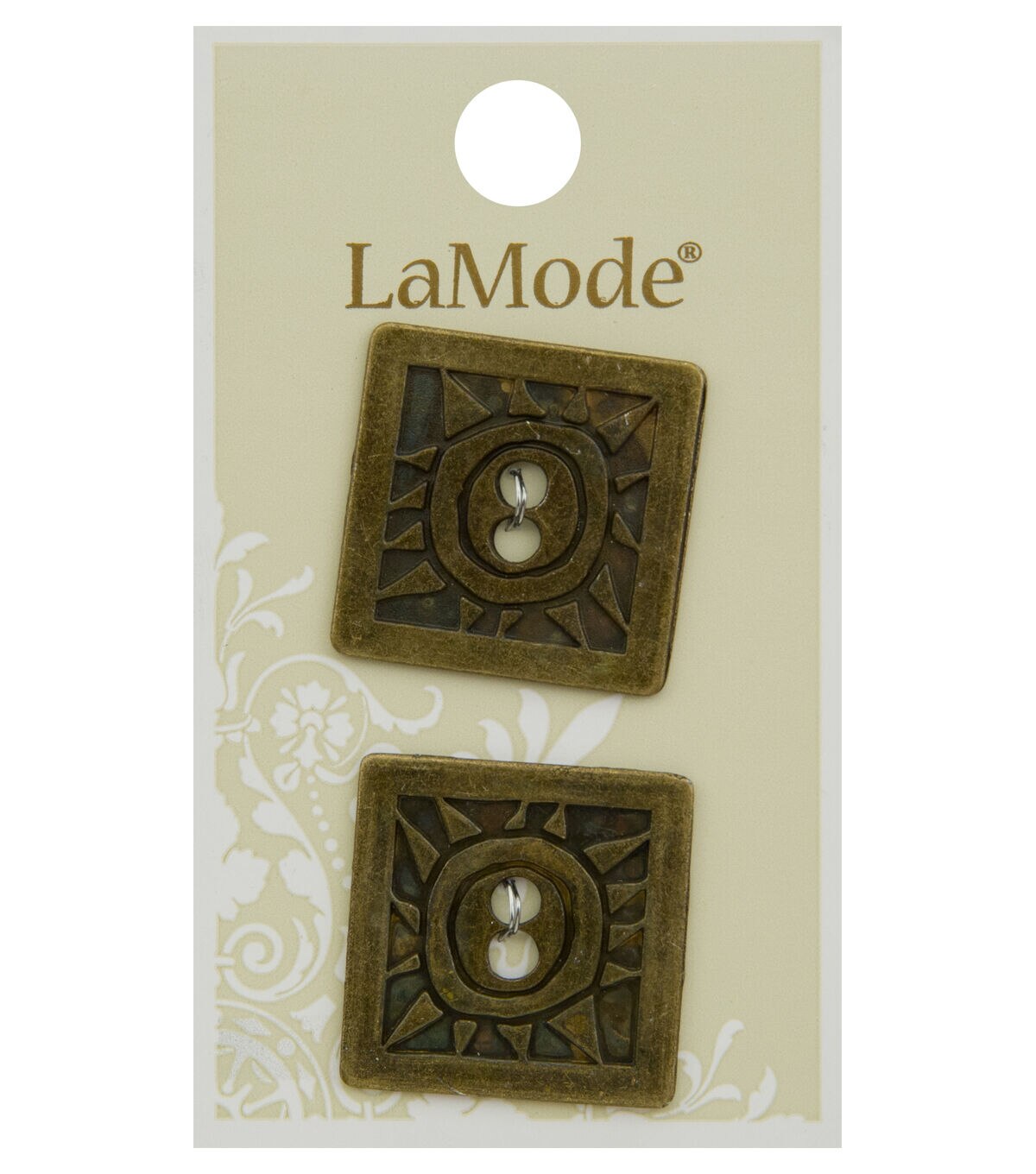 The La Mode Square Buttons Antique Gold will make a great addition to your craft kit. These square buttons sport an antique gold tone and an intricately engraved pattern. They will look great when added to coats, blazers and jackets. You can also use them to decorate photo frames or create jewelry.