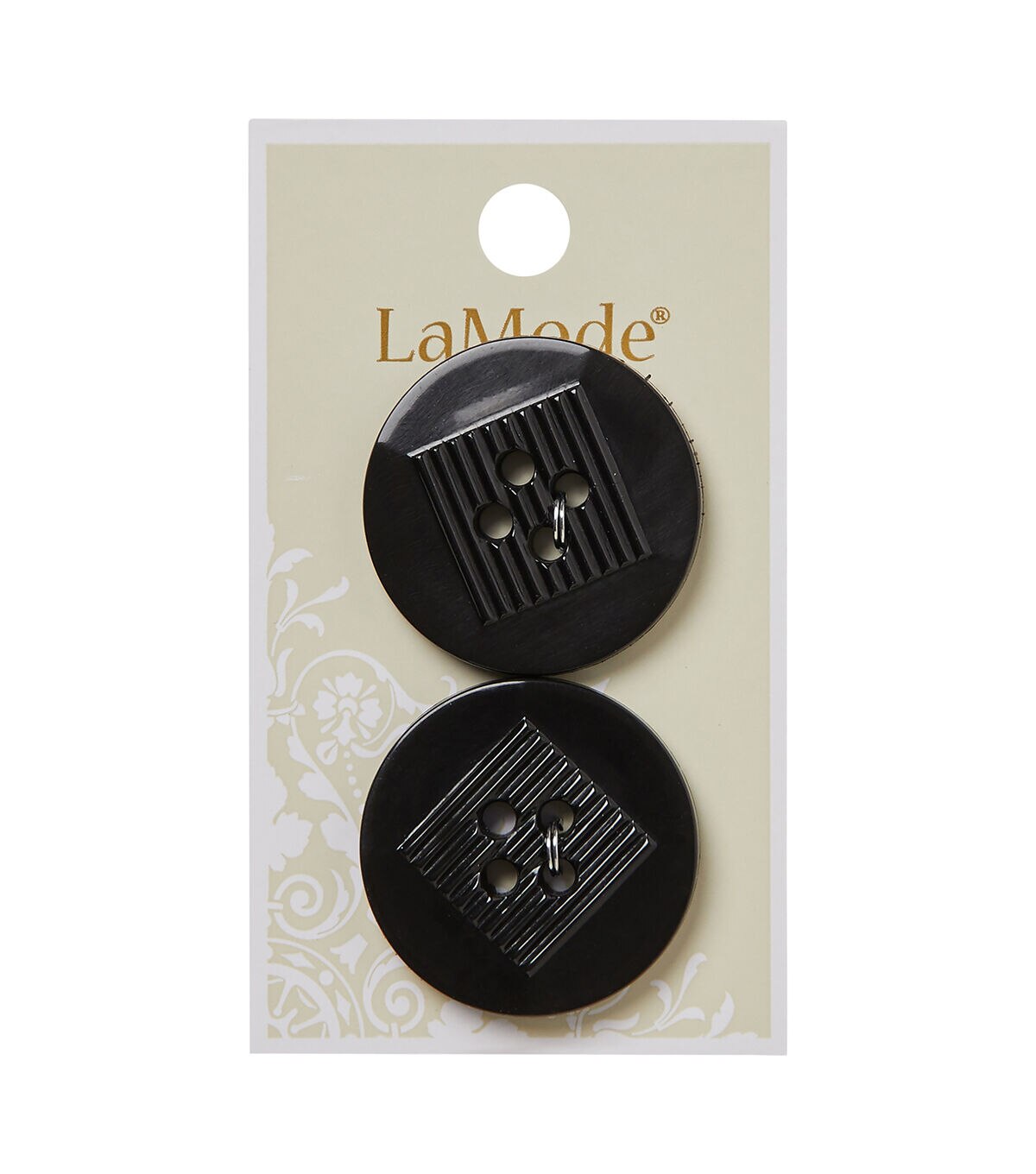 Add visual charm to your sewing projects using the La Mode 4 Hole Buttons - Black. This pack contains two sew-through buttons in black and will make a lovely addition to handmade dresses, tops, tees and more. You can team them with buttons in coordinating colors, sold separately, to make your creations look unique.