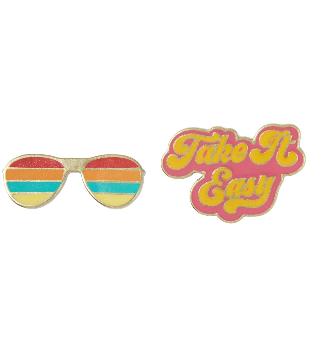 The La Mode Cute & Trendy Glasses & Words Bright Shank Buttons - Multi will perfectly complement your summer linen dress or top. They come in a pack of two and display fun and quirky designs. One of them is shaped like a sunglass flaunting bright hues outlined with a gold tone while the other spells out the phrase ‘Take It Easy.’ You can also add these buttons to your handmade fabric bag or use them to decorate your papercrafting projects.