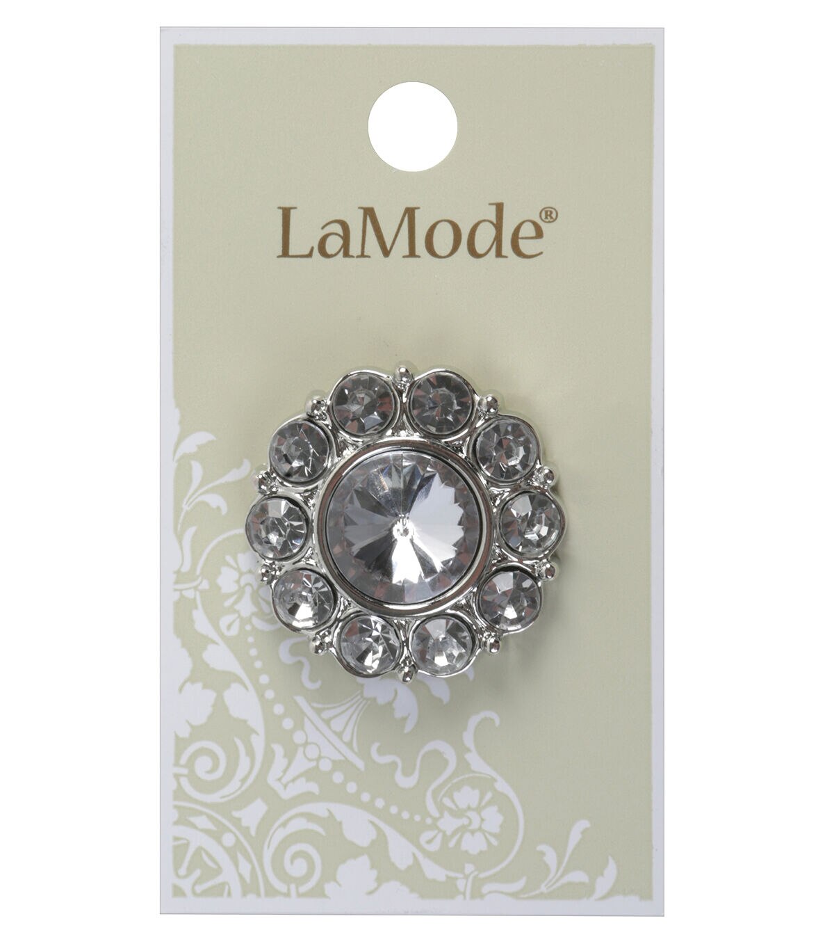 Make your apparel designs stand out with the LaMode Crystal Flower Button-Silver. Studded with crystals, this flower-shaped button will be perfect to adorn your DIY top, skirt or dress in any color. It will also accentuate your knitting and crochet creations. This pack comprises one button.