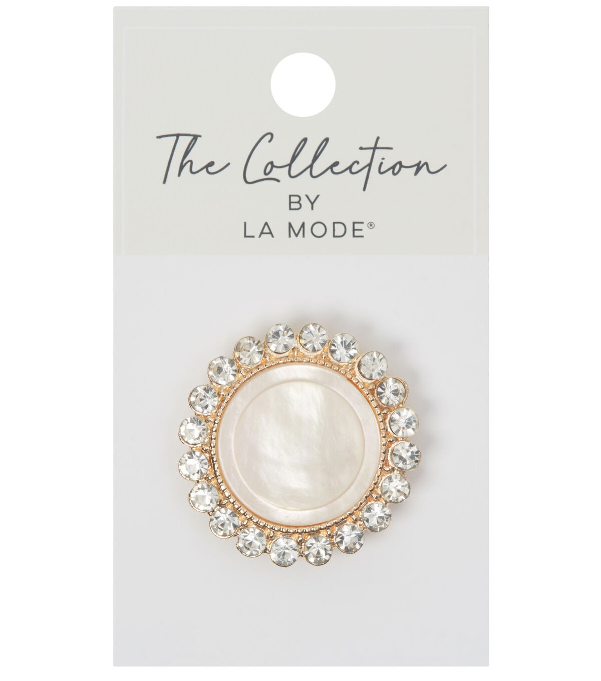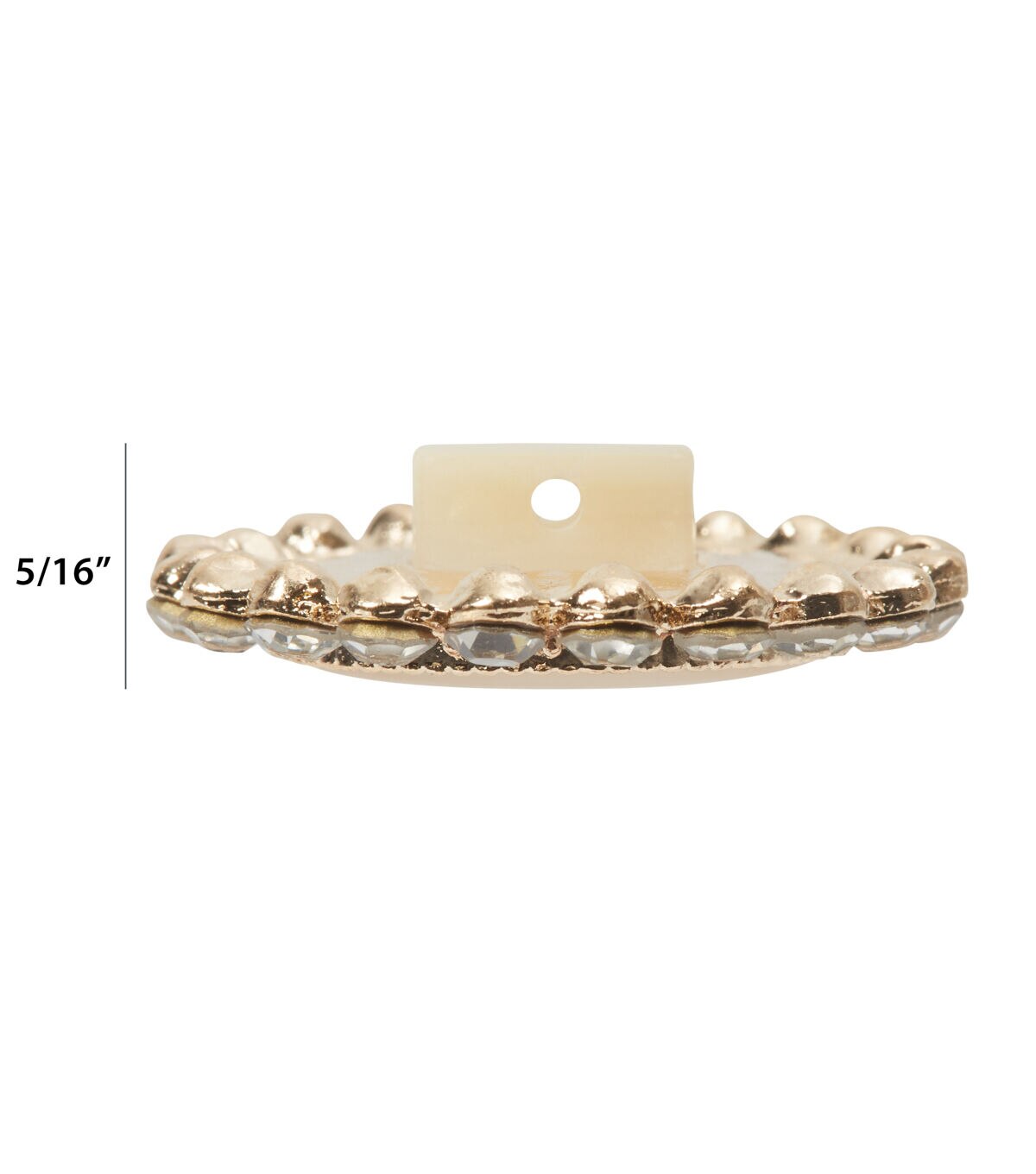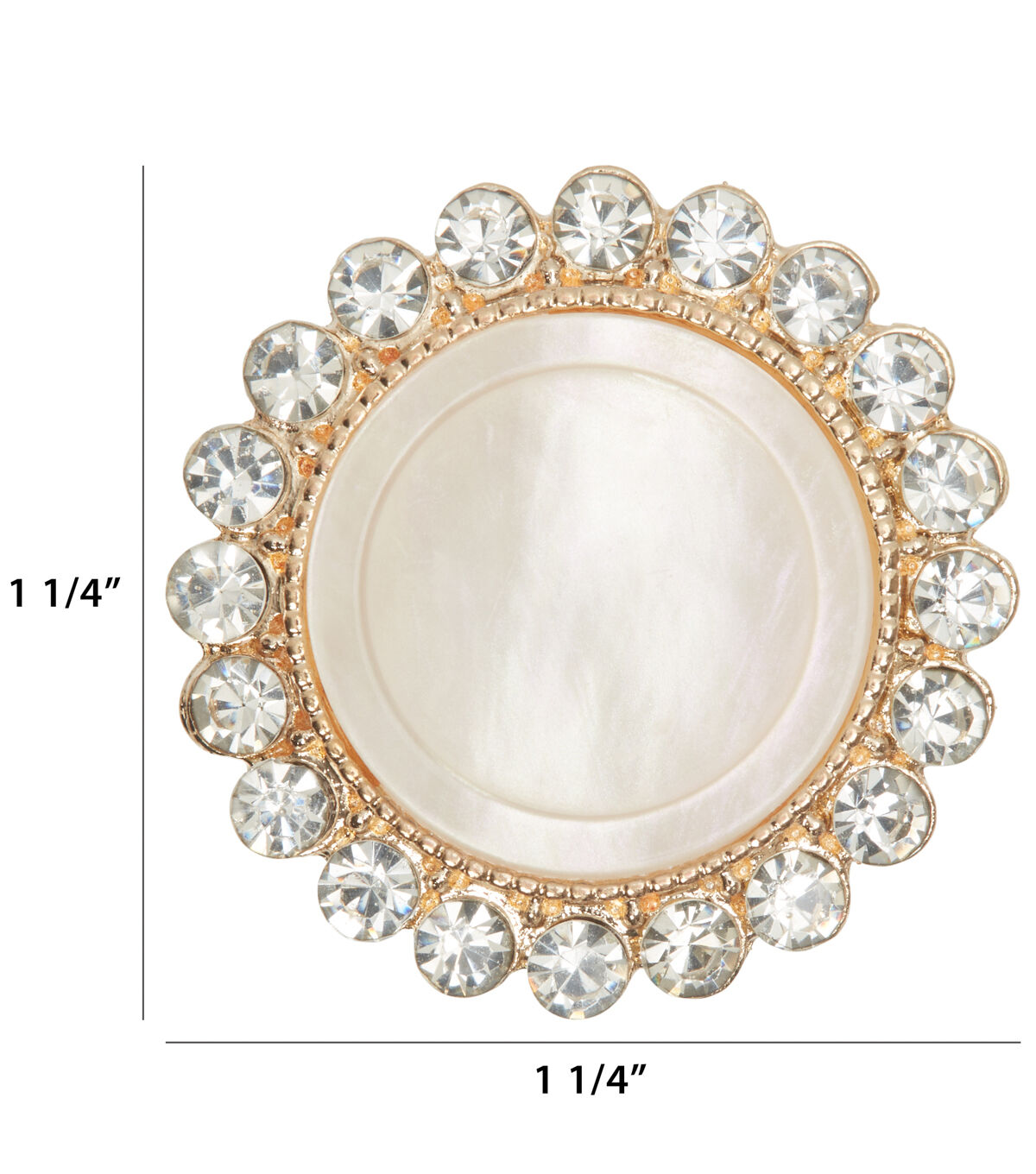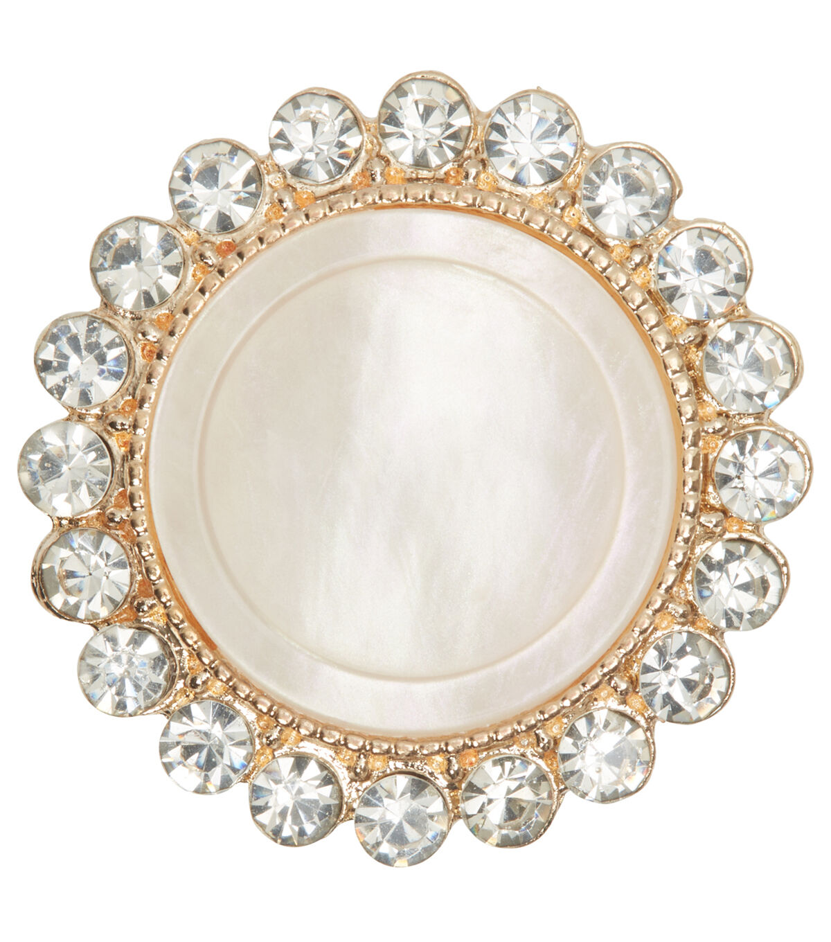 Finish your handmade fabric creations in style with the La Mode Rhinestone Shank Button - White & Gold. The center of this button sports a pearlescent shade and comes with an ornate gold-toned rim that is studded with rhinestones. It will make a lovely addition to plain tops or tees. You can also use it as a mock button for your fabric bag.