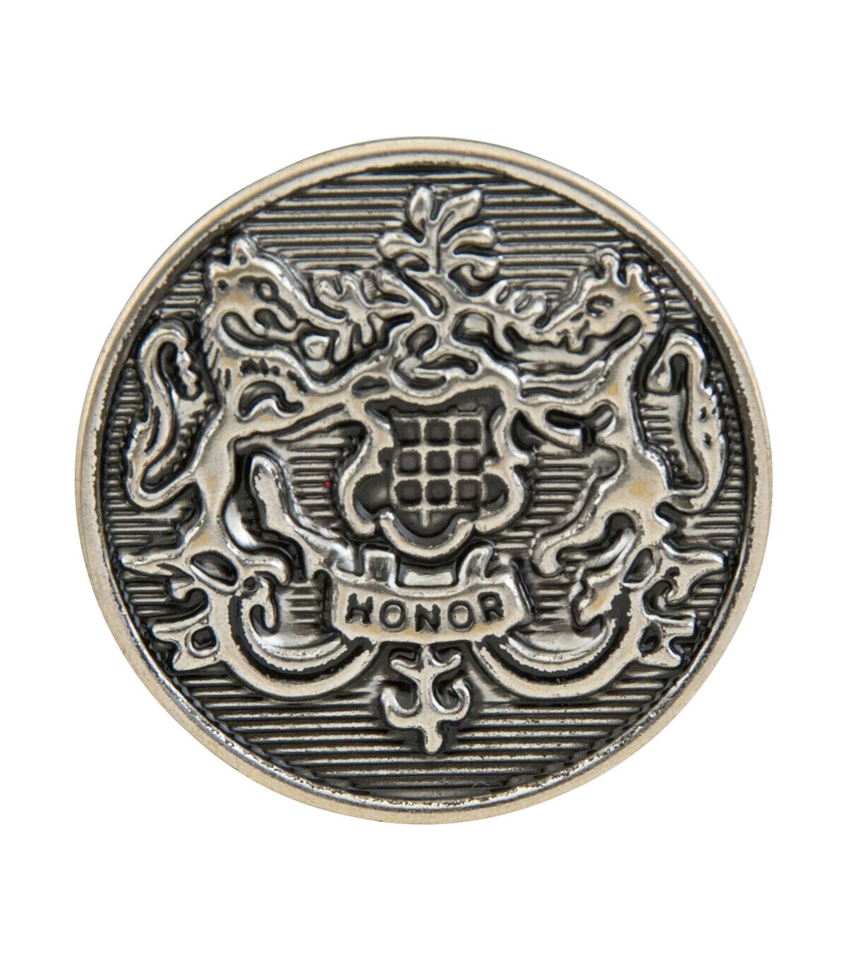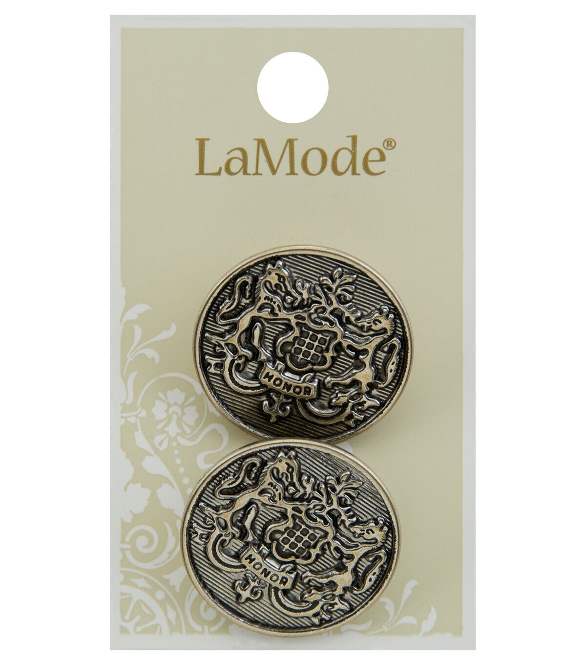 Lend an antique touch to your art, craft and fashion projects with the La Mode Round Shank Buttons Antique Silver. These intricately designed buttons will perk up the look of your shirts, tops, blazers, coats and more. You can also add them to turncoats, jackets and other knit accessories.Brand: La Mode Collection: Apparel Buttons Includes two buttons Size: 1.13 inches Content: Metal Care: Washable & dry cleanable