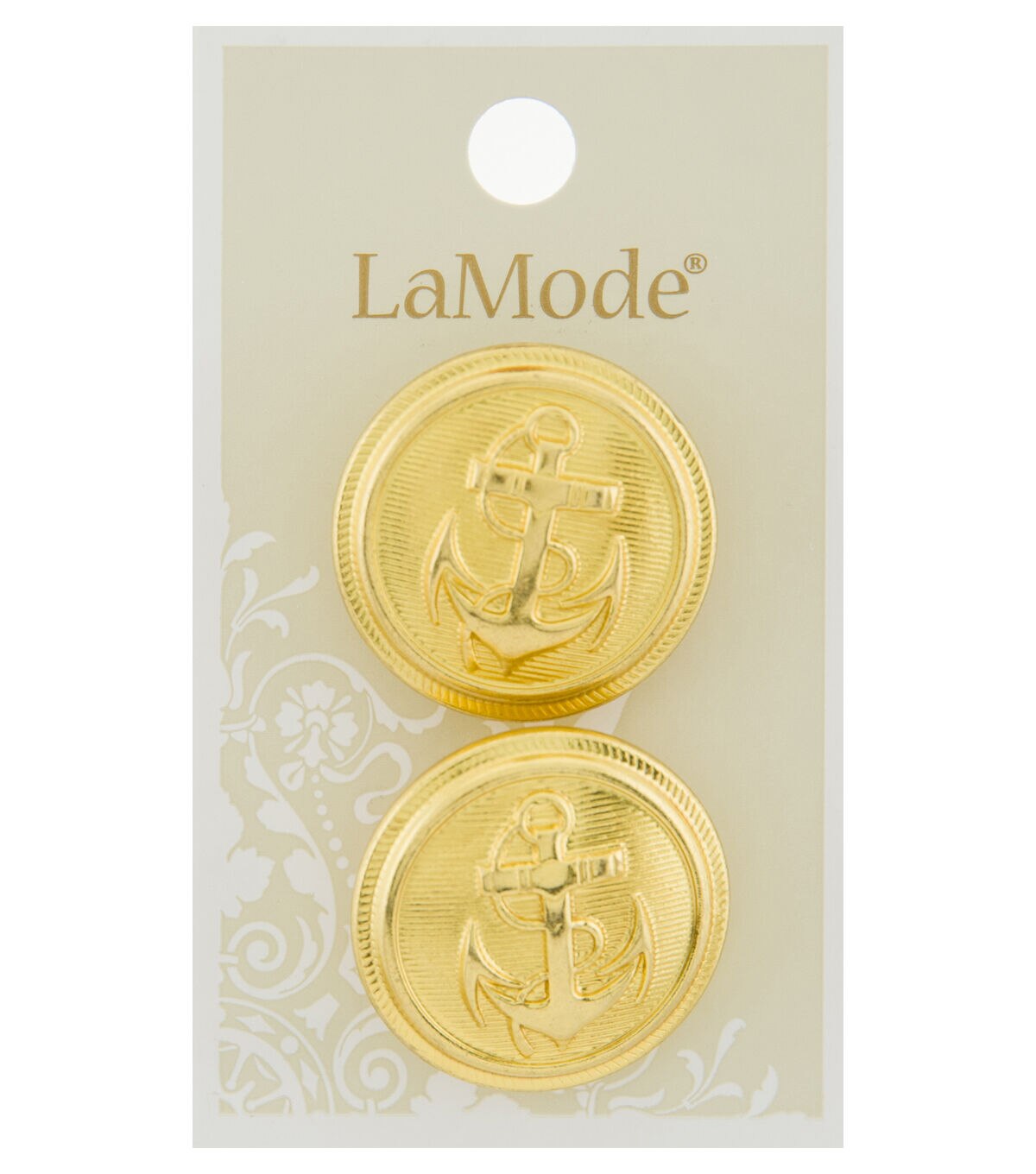 The La Mode Shank Buttons Gold Anchor will make a great addition to your craft and sewing supplies. These buttons sport a gold tone and display an embossed anchor pattern. Add them to jackets, coats, dresses, tops, skirts, or even hair accessories to add a hint of style to them. They will also lend a decorative touch to DIY tote bags.