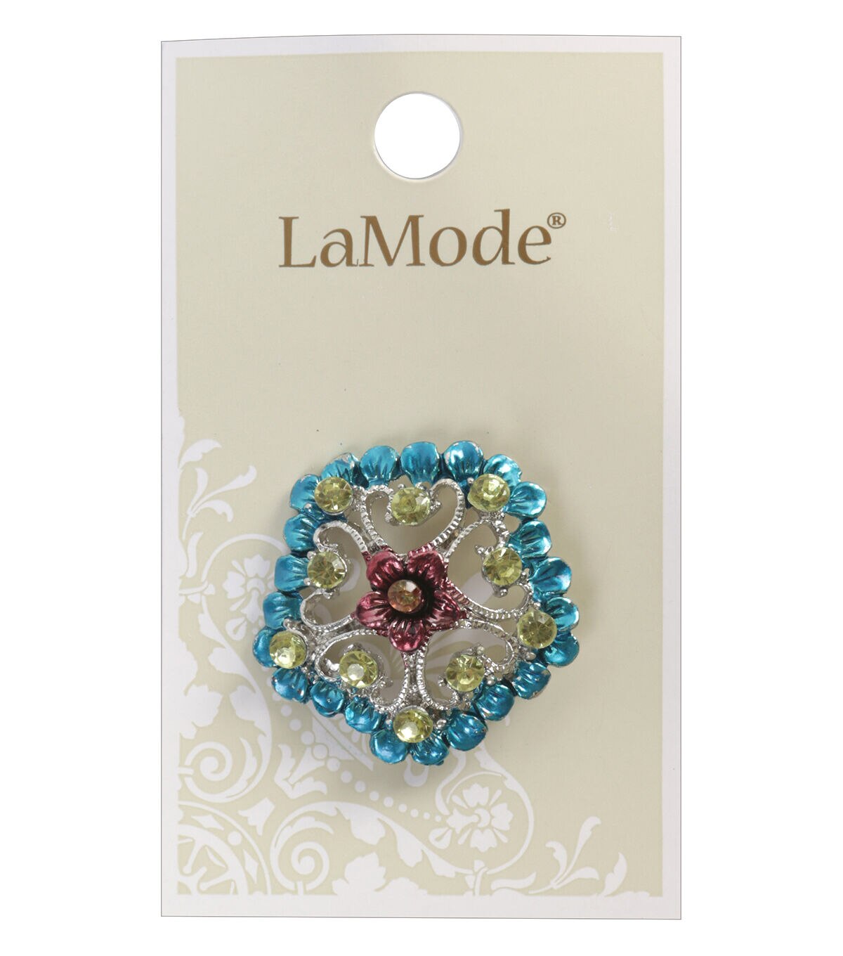 Perk up a sewing project with the La Mode Metal & Rhinestone Shank Button. This shank button is made of metal and comes studded with rhinestones in lovely complementing hues. It will look great on a jacket, coat, dress, handmade sweater and more. You can also use it to add an appealing touch to a fabric bag.