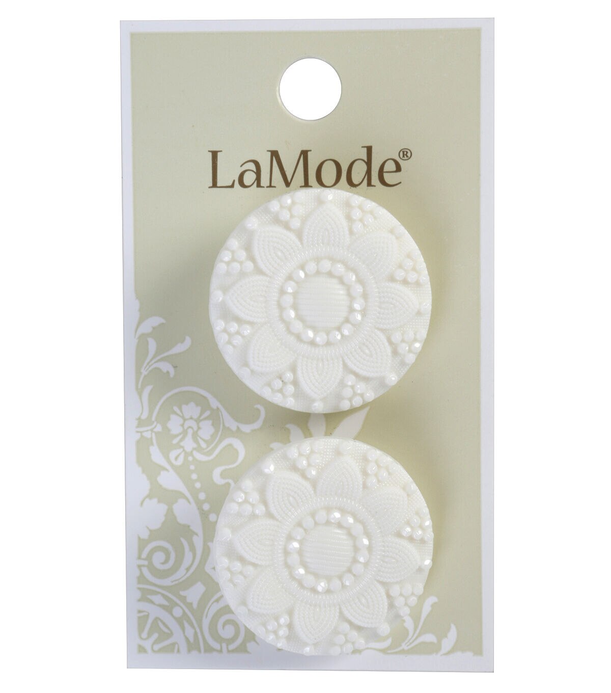 La Mode 1 1/8" White Decorative Round Shank Buttons 2pk