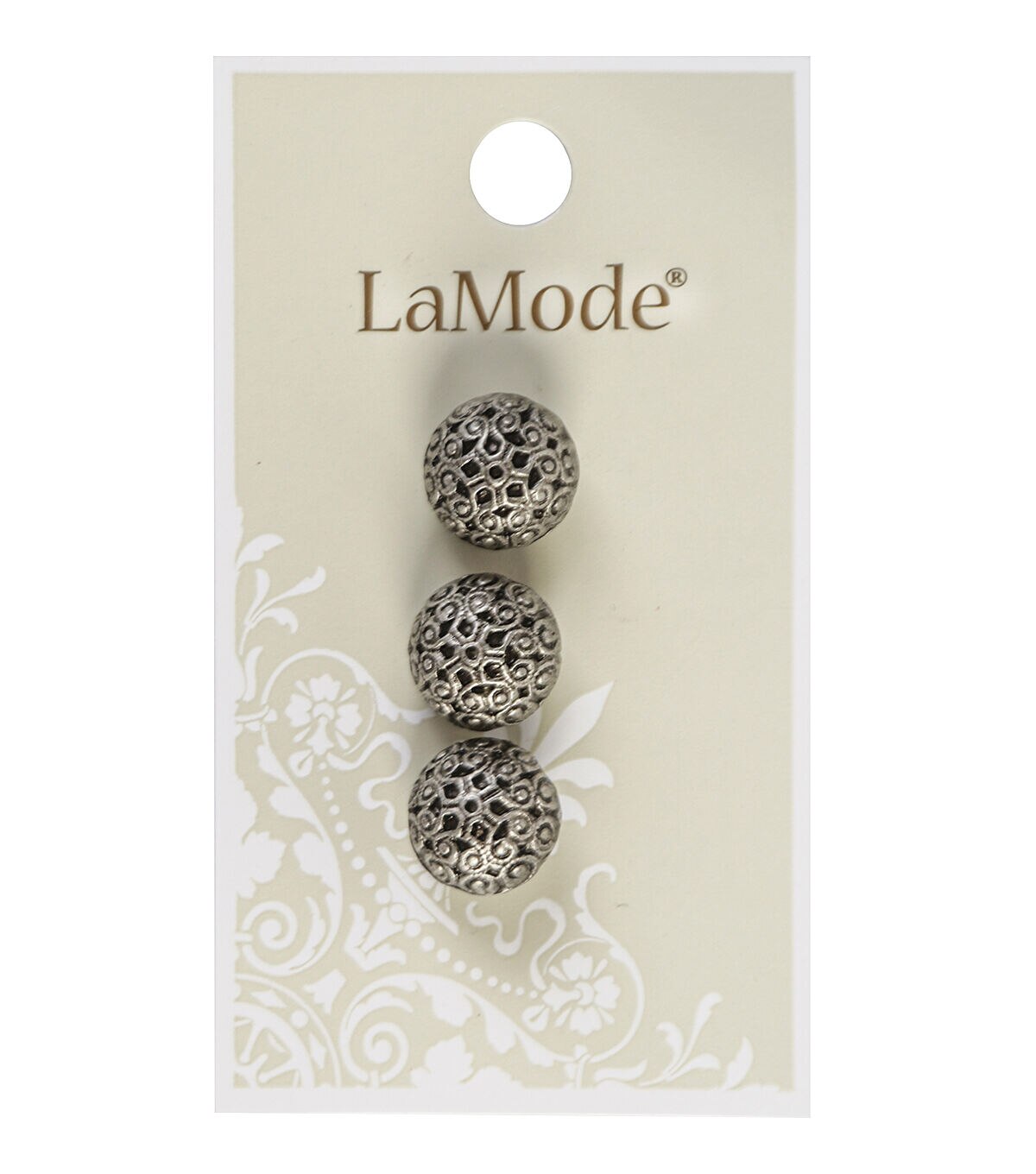 • La Mode 1/2" Antique Silver Ball Shank Buttons 3pk