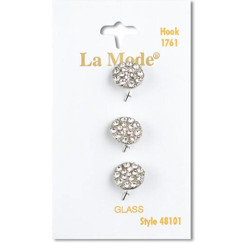 • La Mode 1/2" Silver & Clear Crystal Rhinestone Shank Buttons 3pk