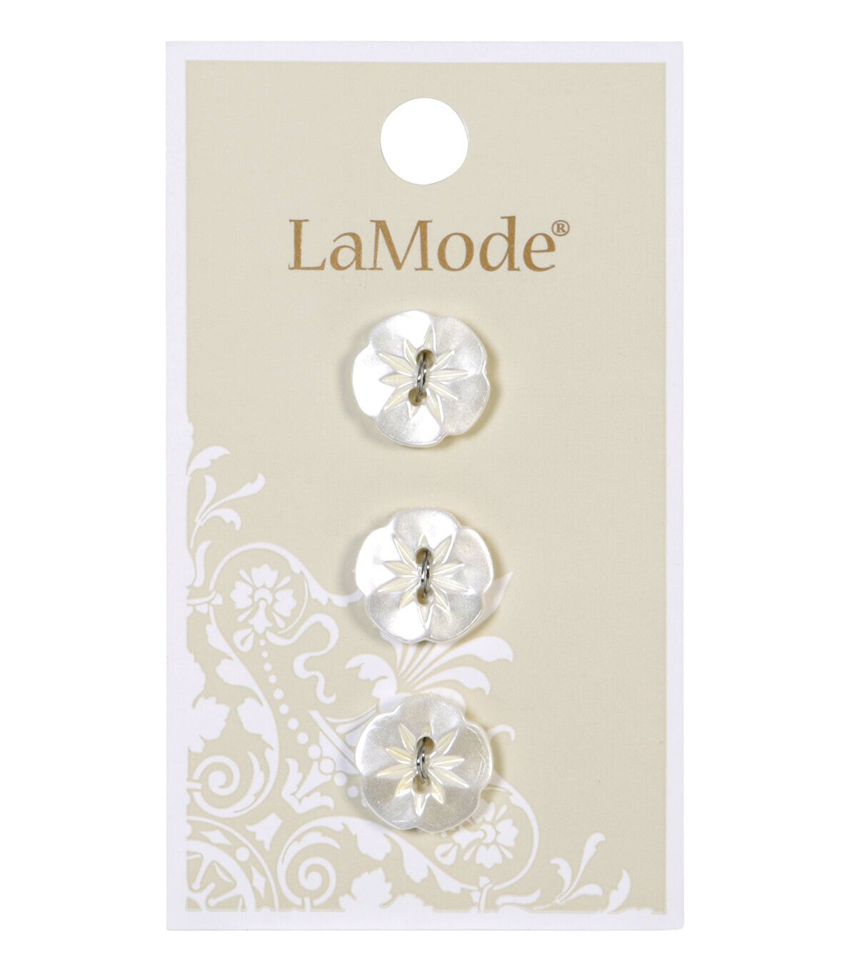 The La Mode Flower Buttons - White will make a great addition to your apparel projects. These buttons are shaped like a flower and sport a white shade. They will be perfect for your handmade formal shirt or top. You can mix and match with other colorful buttons, sold separately, and use them for decorative purposes.