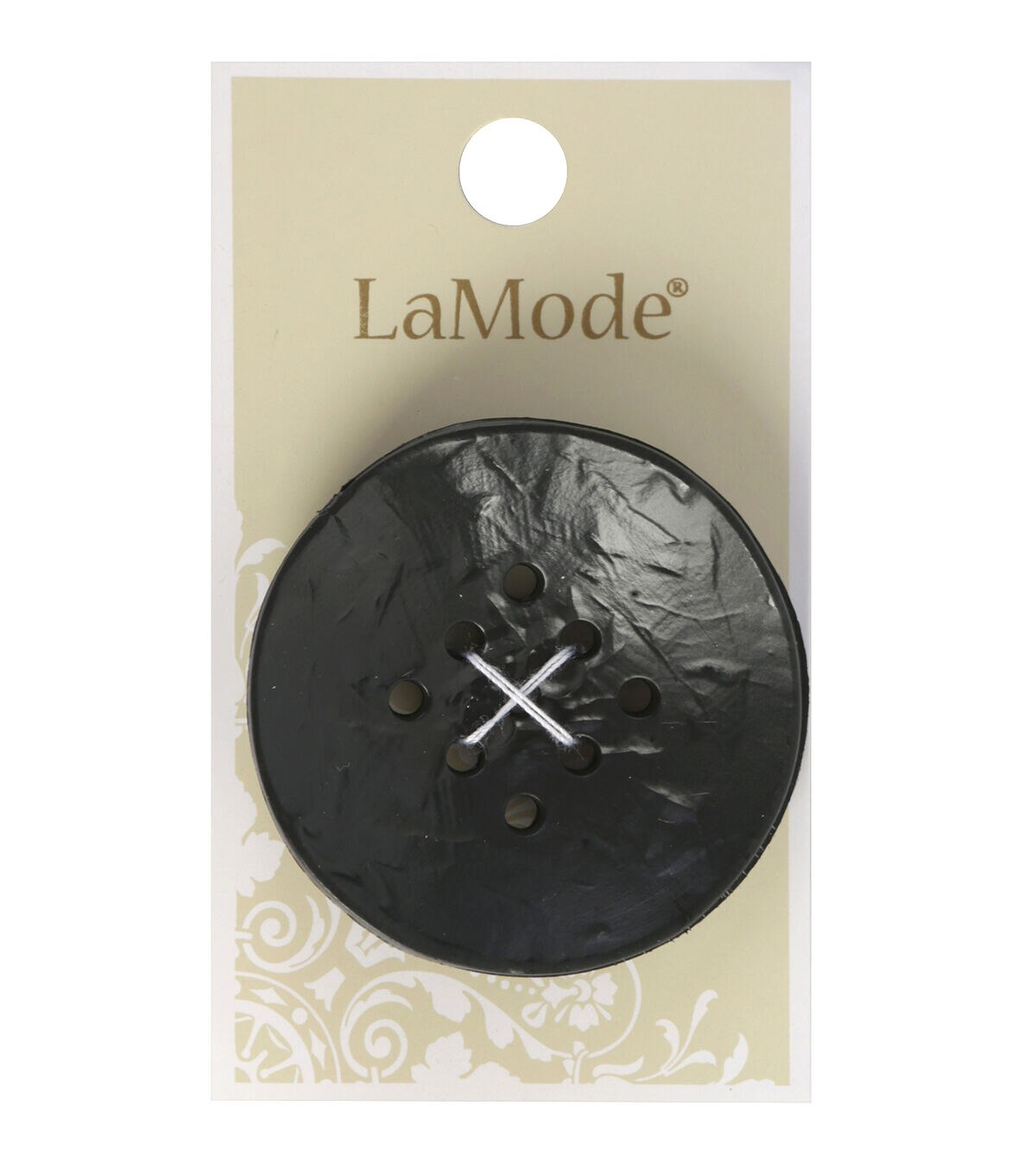 Add a quirky touch to your sewing projects with the La Mode 9 Hole Monogram Button - Black. This black button is specially designed with nine sew-through holes. Sew a letter or design on it before adding it to your sweater, shawl or scarf. You can also combine monogram buttons of other sizes, sold separately, to put together a word or name and create a customized gift for a loved one.