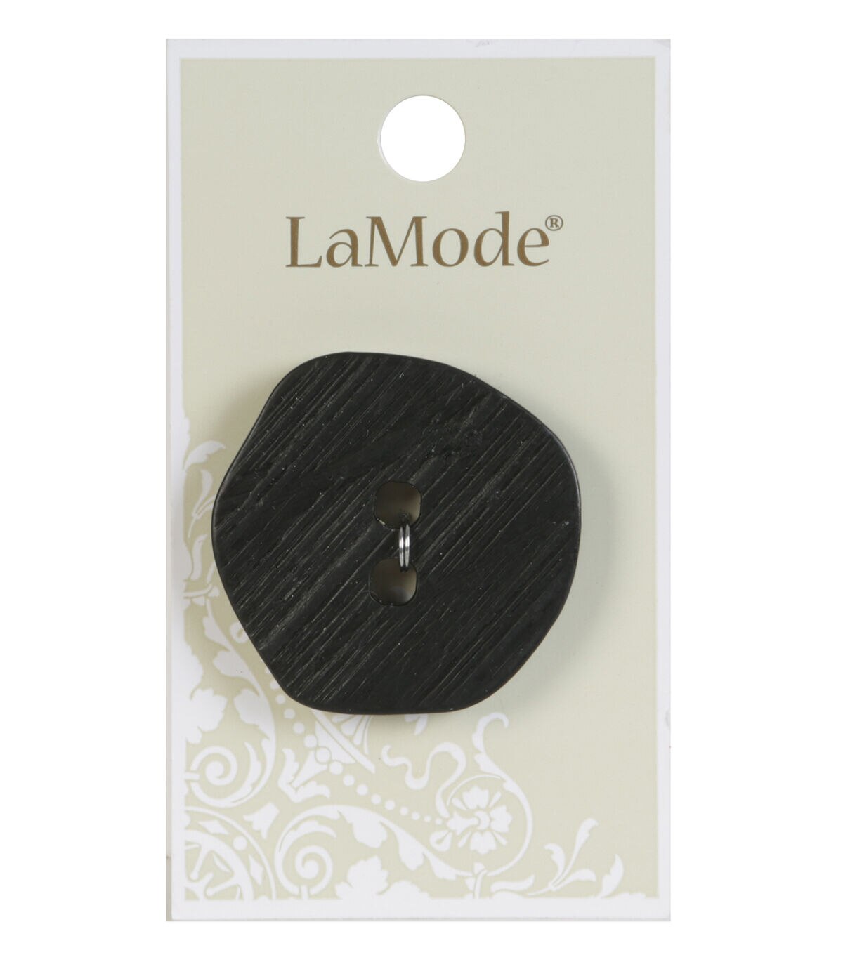 The La Mode Black Textured 2 Hole Button is sure to make an interesting addition to your sewing essentials. This button sports a black shade and a textured finish. You can sew it onto a jacket, cushion cover or scarf. It can also be used to embellish your crochet and knitting projects.