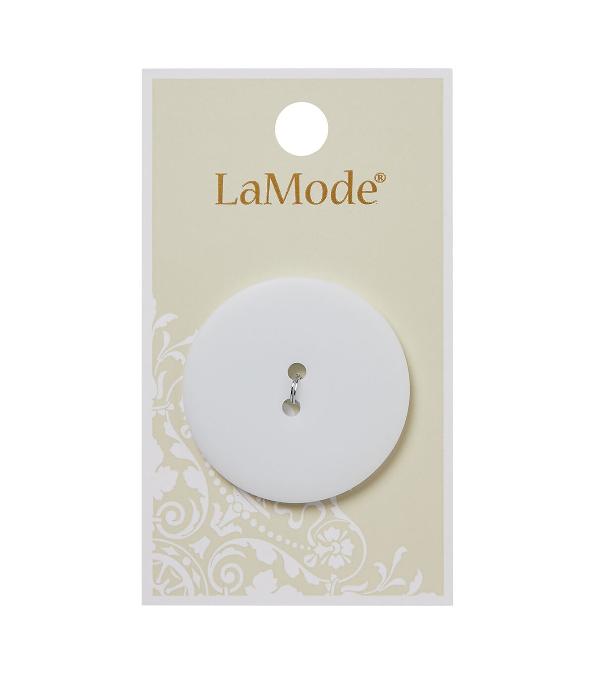 The La Mode 2 Hole Button - White will make the perfect addition to your sewing supplies. This button sports a white shade and will be a great replacement for a broken button on your skirt or top. You can also add it to a tote bag, jacket or coat for fastening purposes.