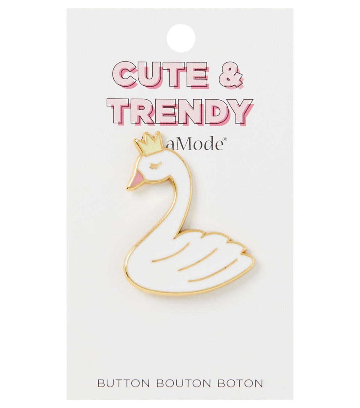 Finish your handmade sweater in style with the La Mode Cute & Trendy Swan Shank Button - White. This button resembles a swan wearing a crown and will give it the perfect finishing touch. The gold-toned border adds to its appeal. You can also add it to DIY dresses, tops and more for a decorative look.