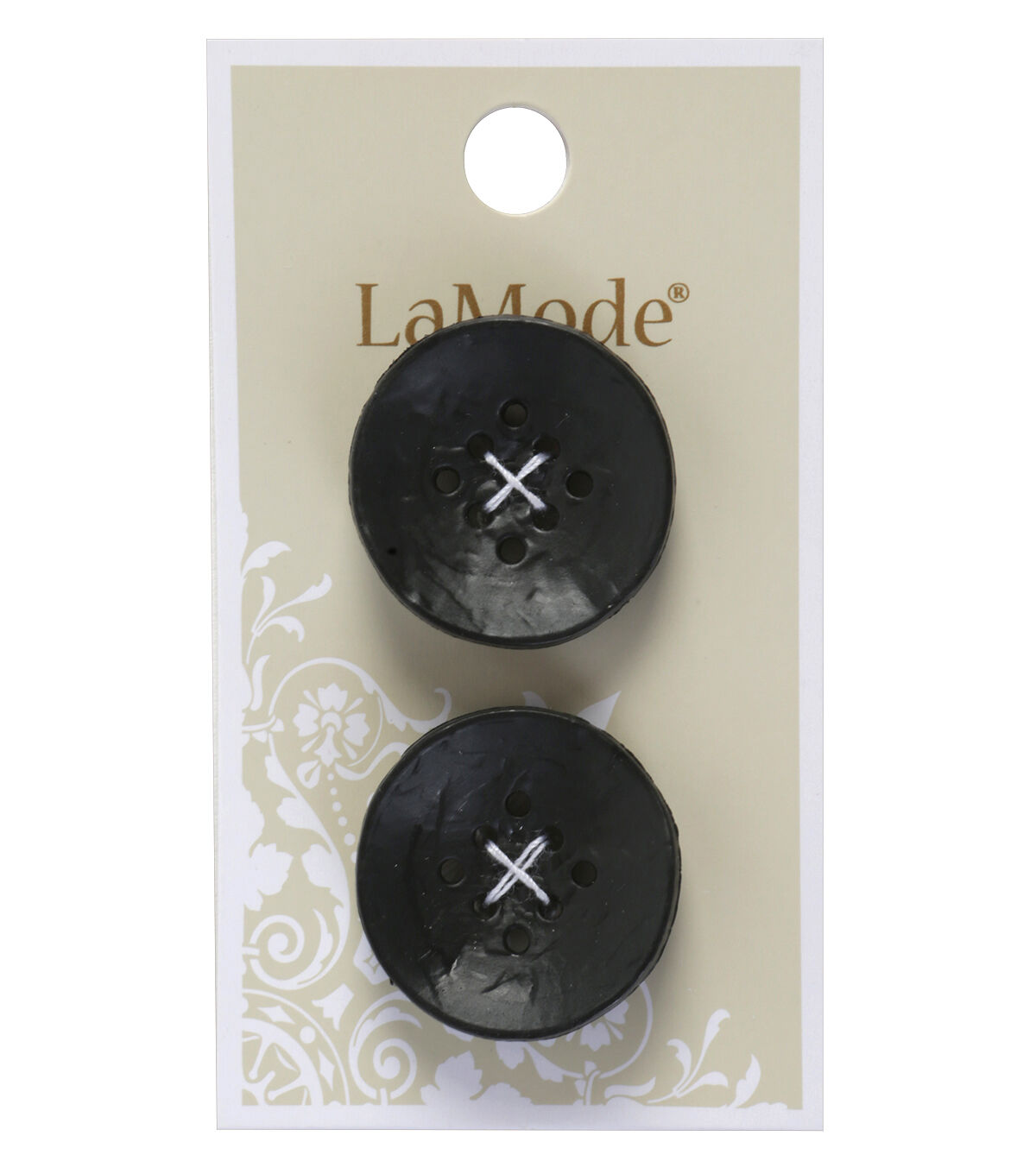 The La Mode 9 Hole Monogram Buttons - Black are sure to make an interesting addition to your sewing essentials. Designed with nine sew-through holes, you can sew monogram letters or initials on them before stitching them onto jackets, cushion covers or scarves. You can also use them in your crochet and knitting projects.