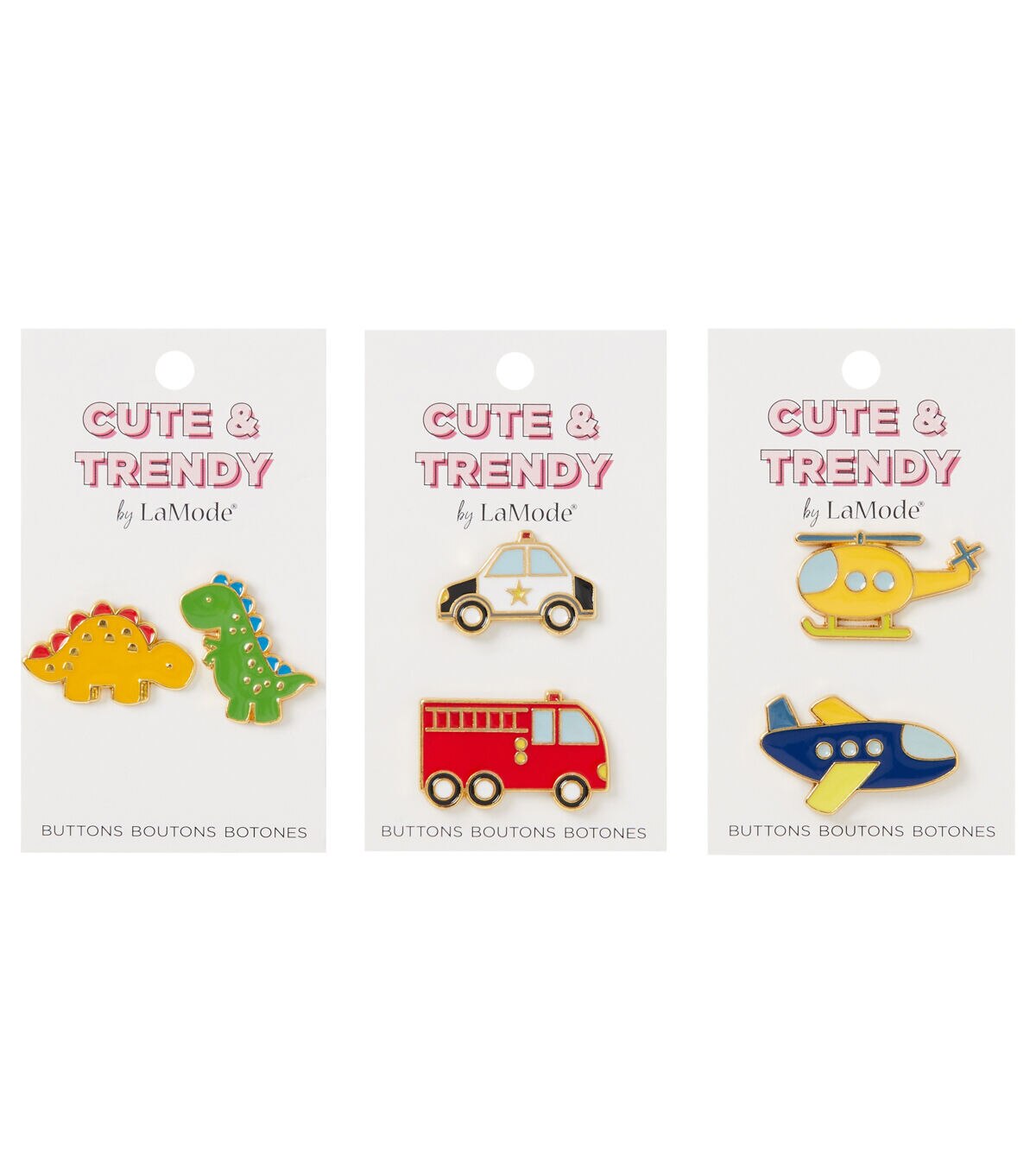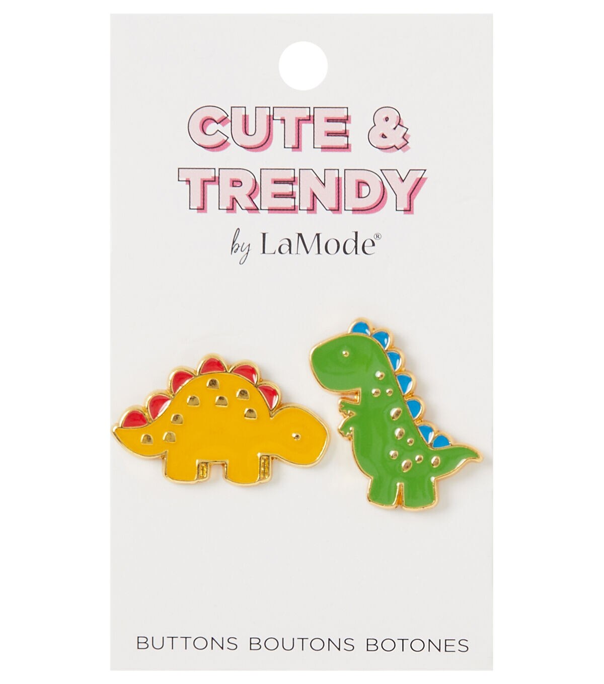 The La Mode Cute & Trendy Dinosaur Shank Buttons - Multi will be perfect for designing your kids' apparel. They resemble tiny dinosaurs and look adorable. These buttons sport bright colors and will make a unique addition to your little one’s tees, tops, jeans and more. You can also use them to adorn home decor projects.