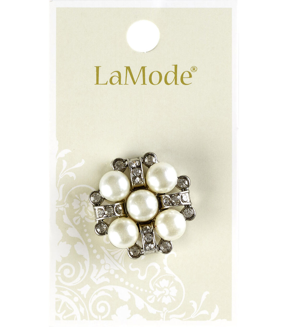 Blending beauty and functionality, the La Mode Pearl & Rhinestone Button will make a great addition to your sewing kit. This button features a beautiful cutout design, and will make your handmade creations stand out. You can add them to your DIY sweater, dress, top and more.