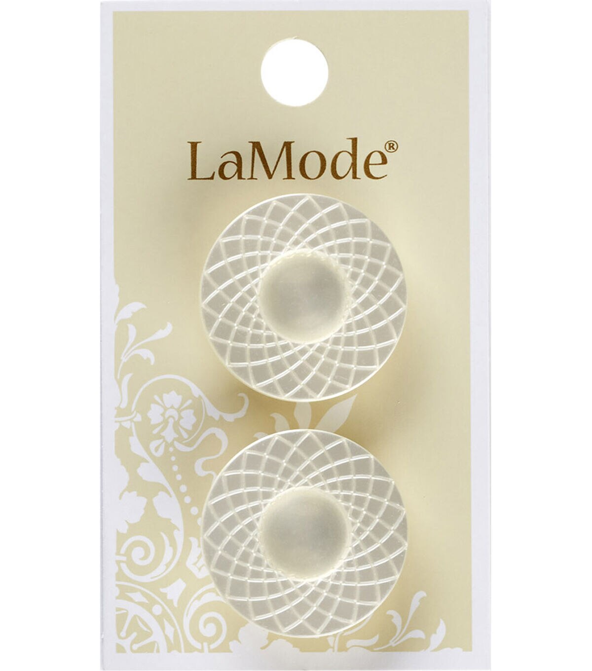 Adorn your traditional shirts, dresses and more with the La Mode Buttons-White Spiralgraph. These buttons have a lovely spiral graph pattern that will lend a dramatic look to your attire. You can also use them to add flair to your art and craft projects. This pack comes with two buttons.