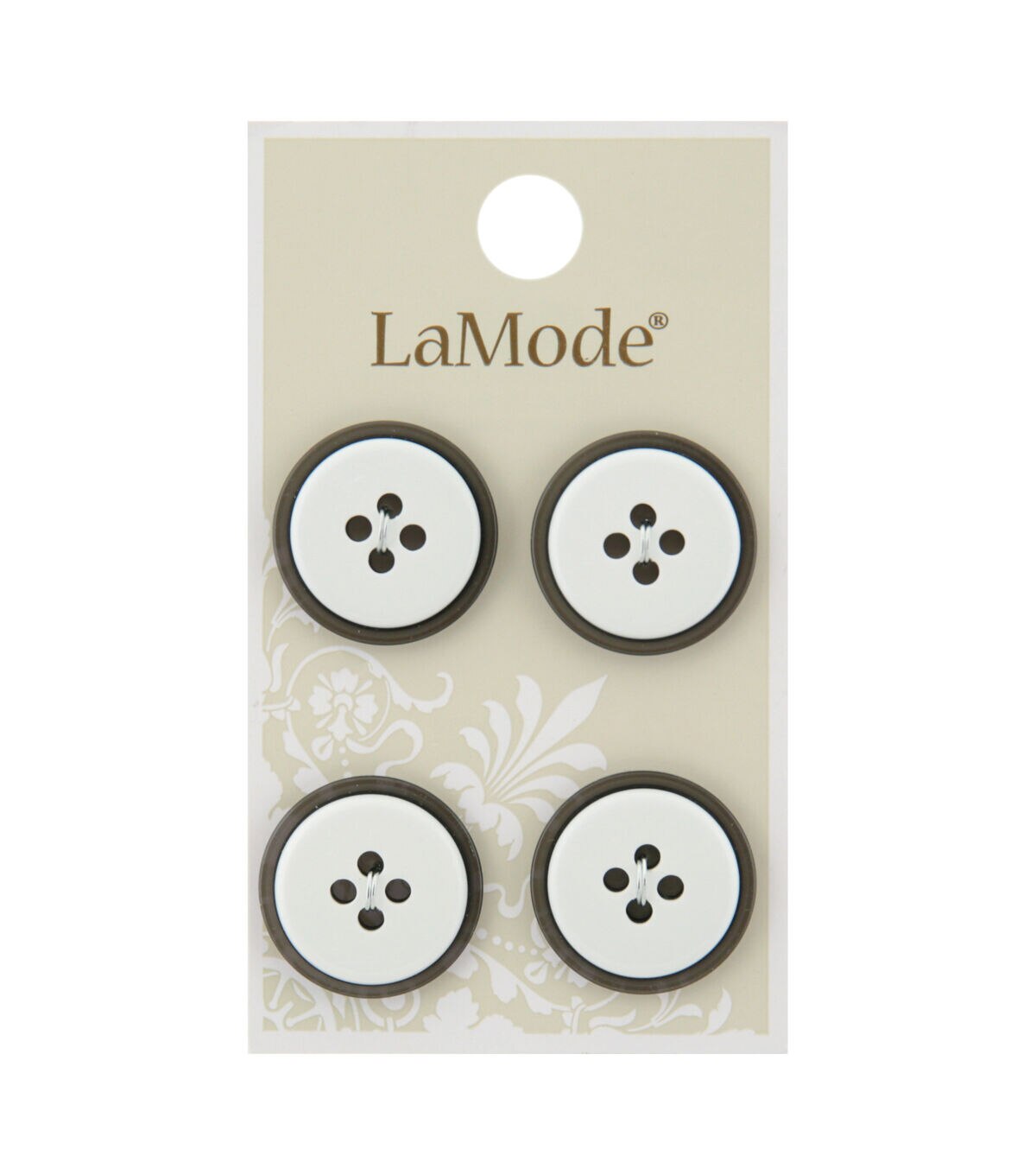 These white and gray La Mode 4 Hole Buttons-White & Gray are ideal for sewing, crafting and fashion projects. The 20 mm sew-through buttons come in a pack of four.