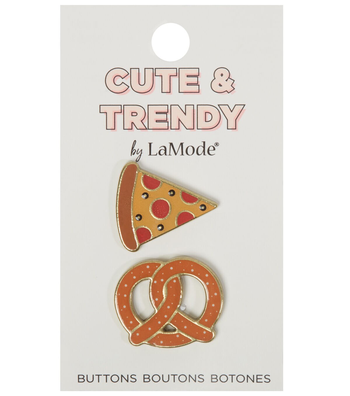 Design a customized handbag or tote for a foodie friend by embellishing it with the La Mode Cute & Trendy Pizza & Pretzel Shank Buttons - Multi. This pack contains two buttons shaped like a pizza and a pretzel. You can also use them to embellish two friendship scarves, one for you and another for your bestie to keep.