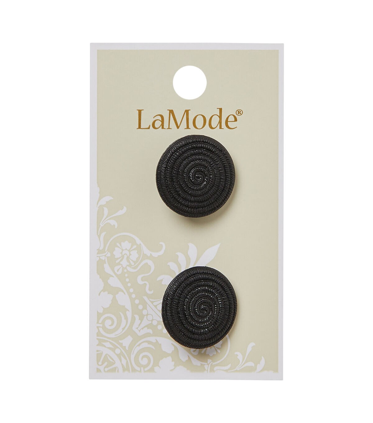 Create a cute headband for your little one and adorn it with the La Mode Shank Buttons - Black. Sporting an interesting pattern and a black shade, these buttons will make a lovely addition to your collection. You can also use them as fasteners on tops, dresses, jackets, coats and more. They will be perfect for a handmade tote bag or wallet.Brand: La Mode Collection: Apparel Buttons Includes two buttons Size: 0.75 inch Care: Washable & dry cleanable