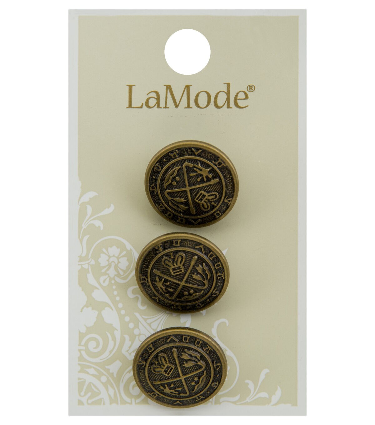 Finish up your handmade creations with the elegant and functional La Mode Round Shank Buttons Dark Gold. Made to prettify your garments, you can use these buttons for coats, jackets, dresses and more. They sport a fancy vintage design in a dark gold tone. This pack comes with three buttons.