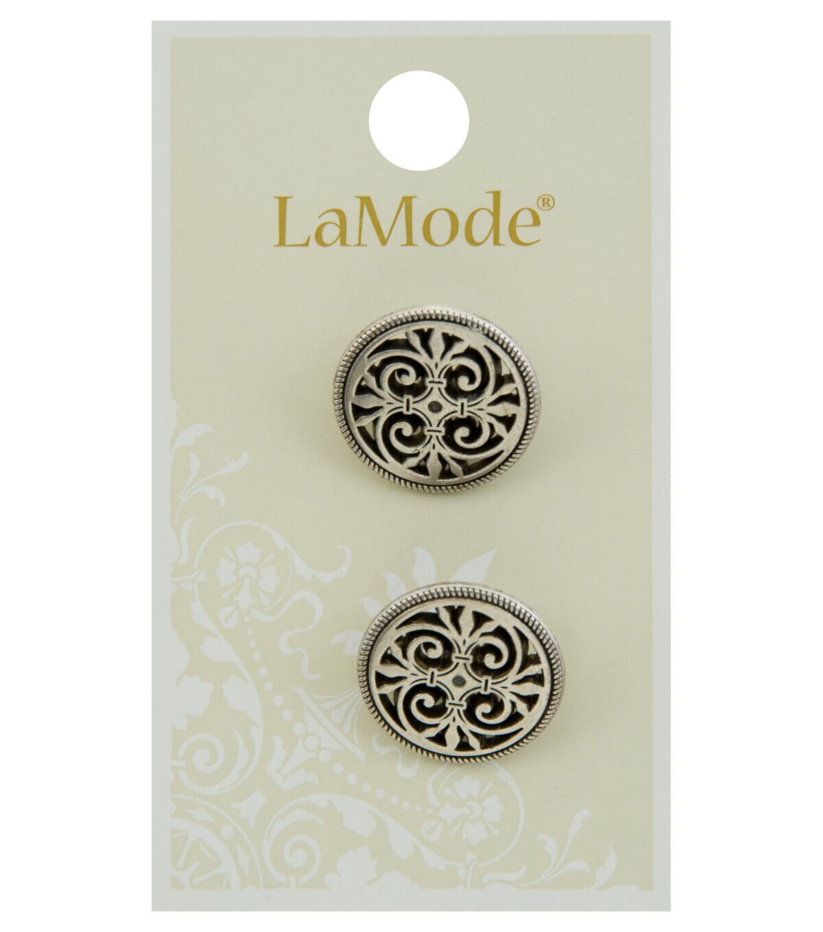 Decorate your handmade creations using the LaMode Swirled Buttons-Silver. They sport a beautiful swirled pattern and silver tone, and will add a touch of rustic charm to your apparel projects. These shank buttons will make a great addition to sweaters, skirts, dresses, tote bags, trousers and more.