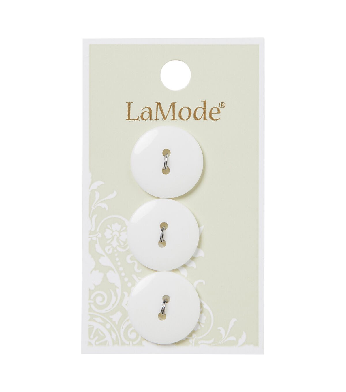 Lend a finishing touch to your little one's apparel using the La Mode 2 Hole Buttons - White. This pack contains three white buttons. Use them as fasteners on your kid's shirts, tees and more. You can team them with other colorful buttons, sold separately, to add a decorative touch to your handmade sewing or papercrafting creations.