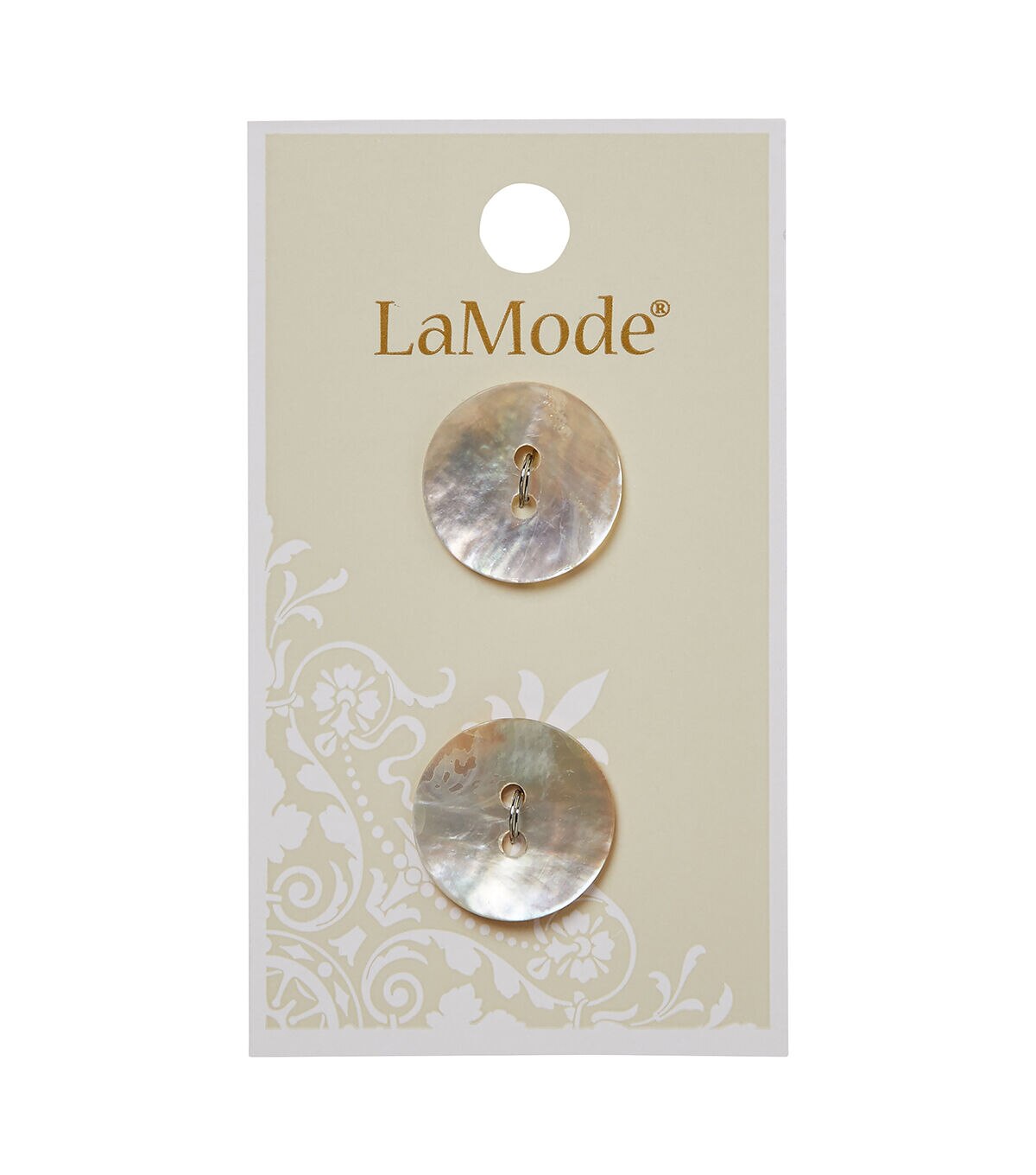 The La Mode Agoya Shell 2 Hole Buttons - White display a soothing white shade and will make a great addition to your apparel projects. These agoya shell buttons will be perfect for tops or dresses in almost any color and can be used for decoration or fastening. You can also team them with buttons in varied hues and use them to embellish your papercrafting projects.