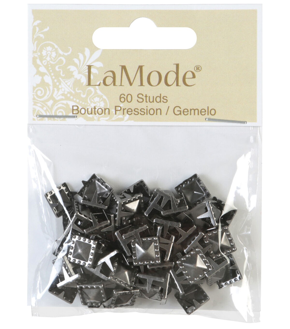 Accentuate your craft creations with the La Mode Square Stud Shank Buttons - Antique Silver. These elegant shank buttons are square and sport an antique silver tone. Use them to transform your everyday sewing projects into something special. They will add the perfect finishing touch to clothes, shoes, accessories and more.