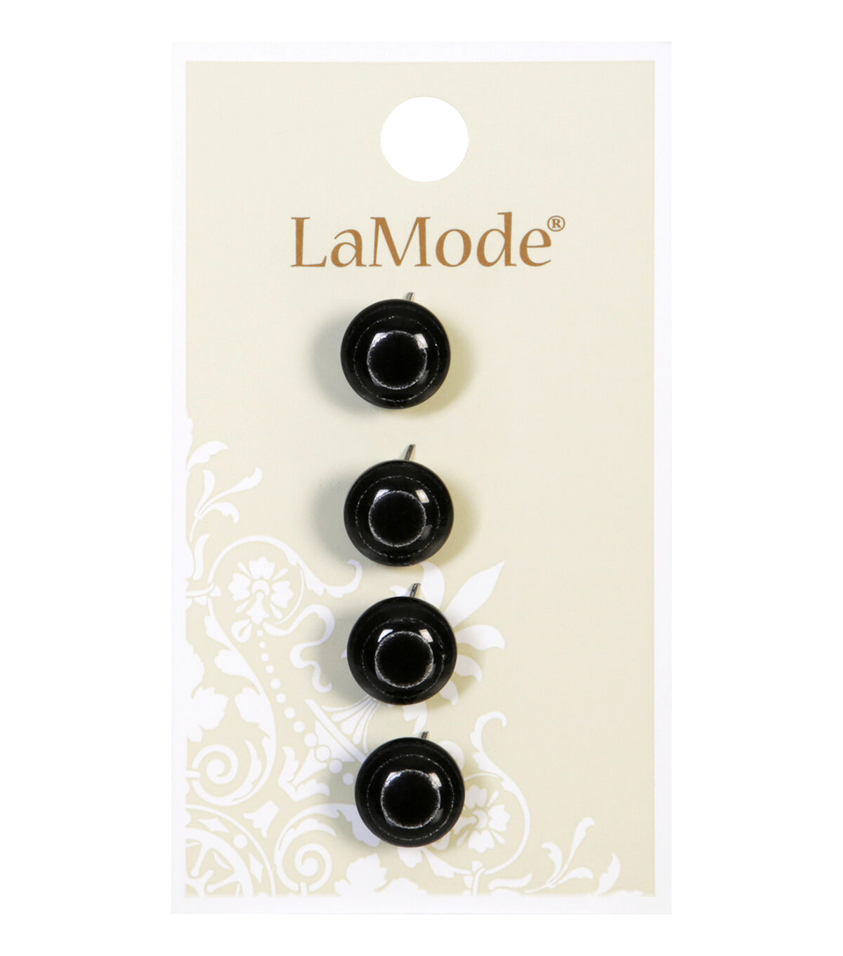 The La Mode Shank Buttons - Black will make a lovely addition to your sewing kit. These shank buttons sport a black shade and glitter finish with a circular pattern in a contrasting hue. Stitch them onto sweaters and jackets for fastening purposes. They will also be ideal for replacing broken buttons.