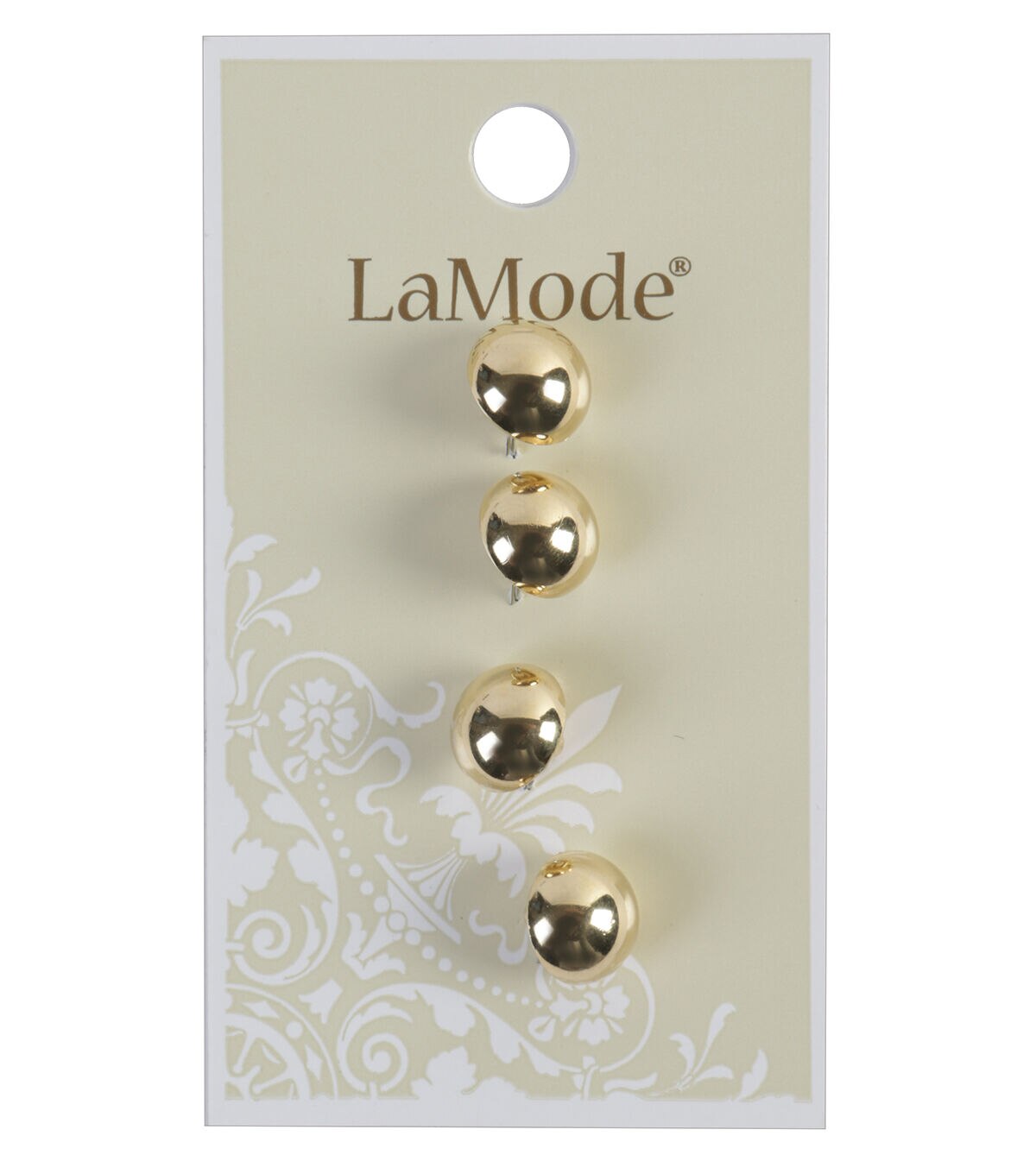 The La Mode Shank Buttons-Gold will make a great addition to your sewing supplies. You can add them to your apparel projects for fastening purposes or use them as an embellishment for your DIY home decor projects. These buttons display a gold-toned finish for visual charm. This pack includes four buttons.