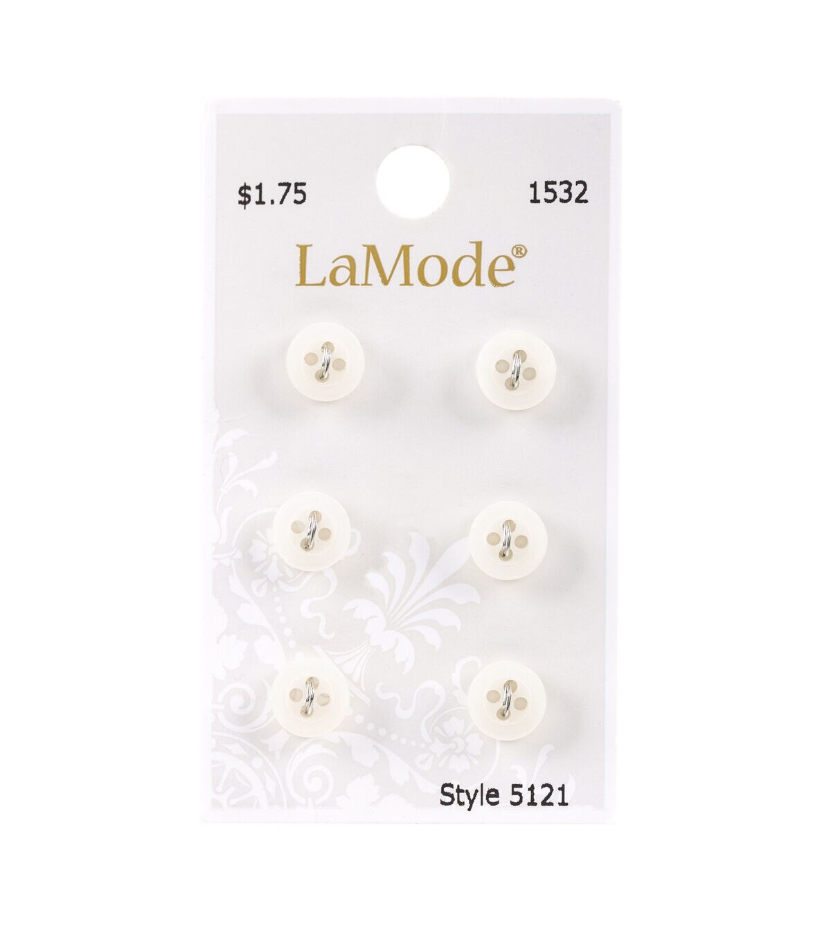 The La Mode Buttons - White will make a great addition to your sewing kit. This pack contains six white buttons sporting a simple look. Use them as fasteners for handmade shirts, tops or dresses for your little one. You can team them with other colorful buttons, sold separately, to decorate fabric bags, hairbands and other accessories.