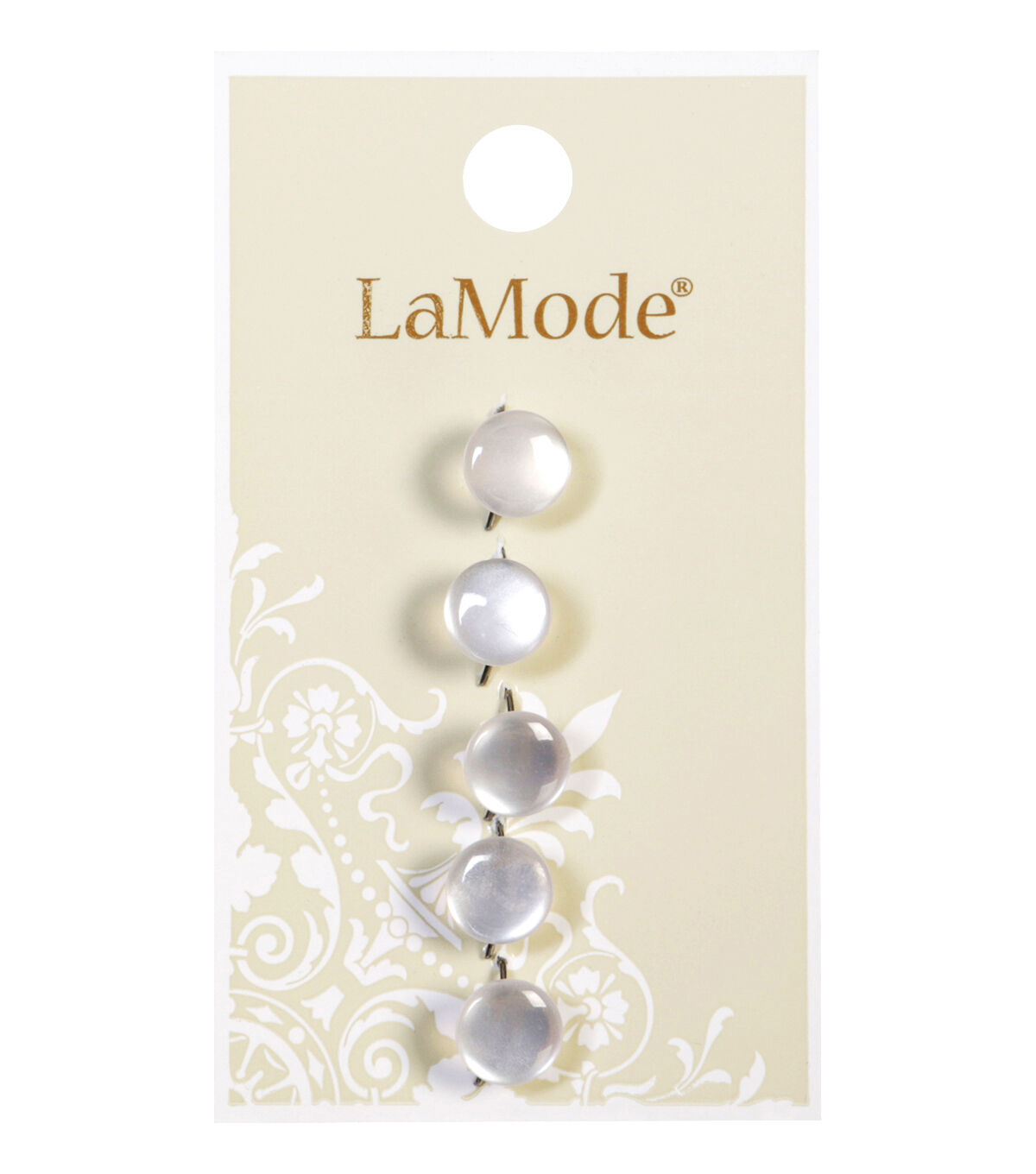 Explore endless crafting possibilities with the La Mode White Round Buttons. This pack includes five shank buttons that sport a white hue. They will look perfect on a coat, jacket or handmade sweater. Team them with buttons in contrasting hues and use them to decorate tote bags, cushion covers and more.