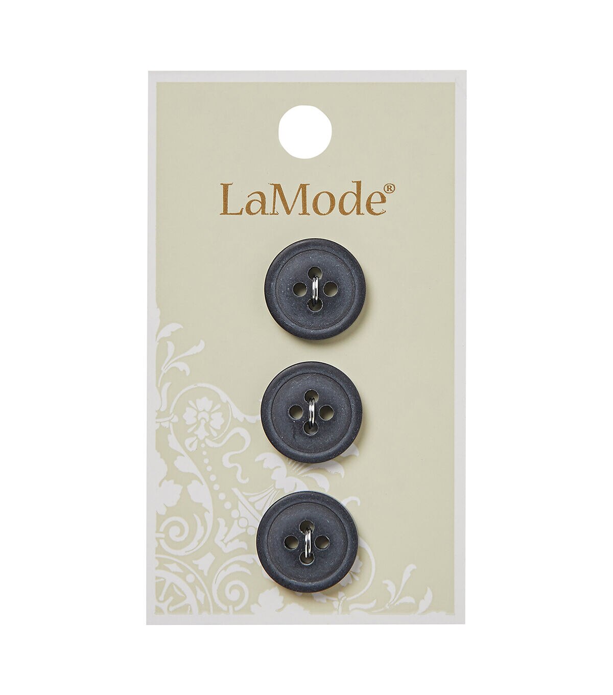 The La Mode 4 Hole Buttons - Black will make a great replacement for broken buttons on your dresses and shirts. These buttons flaunt a black shade. Add them as fasteners to tops, tees, skirts and more. You can also mix and match them with colorful buttons and use them to decorate aprons, lampshades and cushion covers.Brand: La Mode Collection: Apparel Buttons Includes three buttons Size: 0.63 inch Care: Washable & dry cleanable