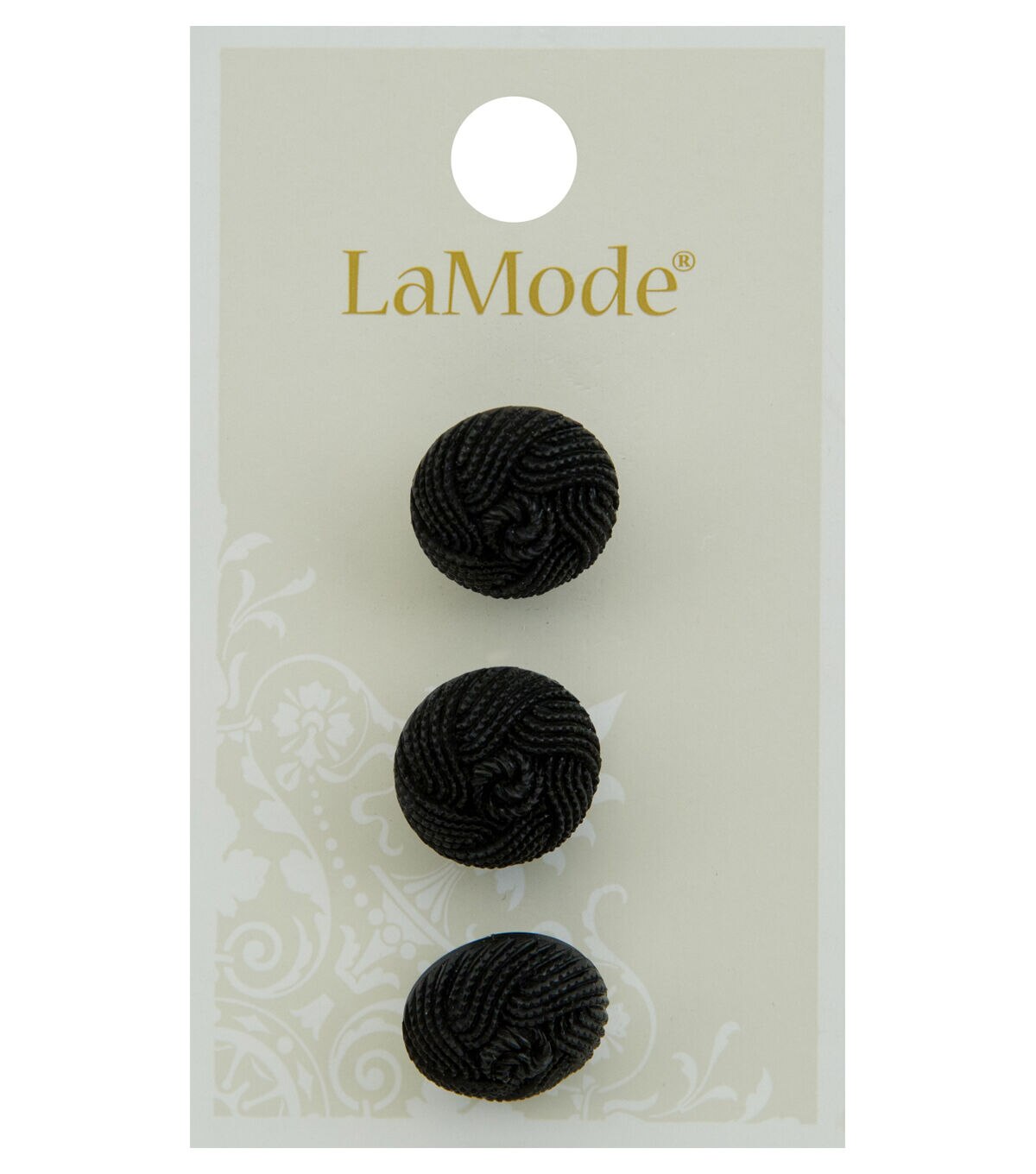 The La Mode Round Woven Shank Buttons Black is perfect to add a new dimension to DIY creations. Displaying a unique engraved design, these buttons will be perfect for decorative purposes. You can add them to dresses, tops, sweaters, and more. This pack contains three shank buttons.