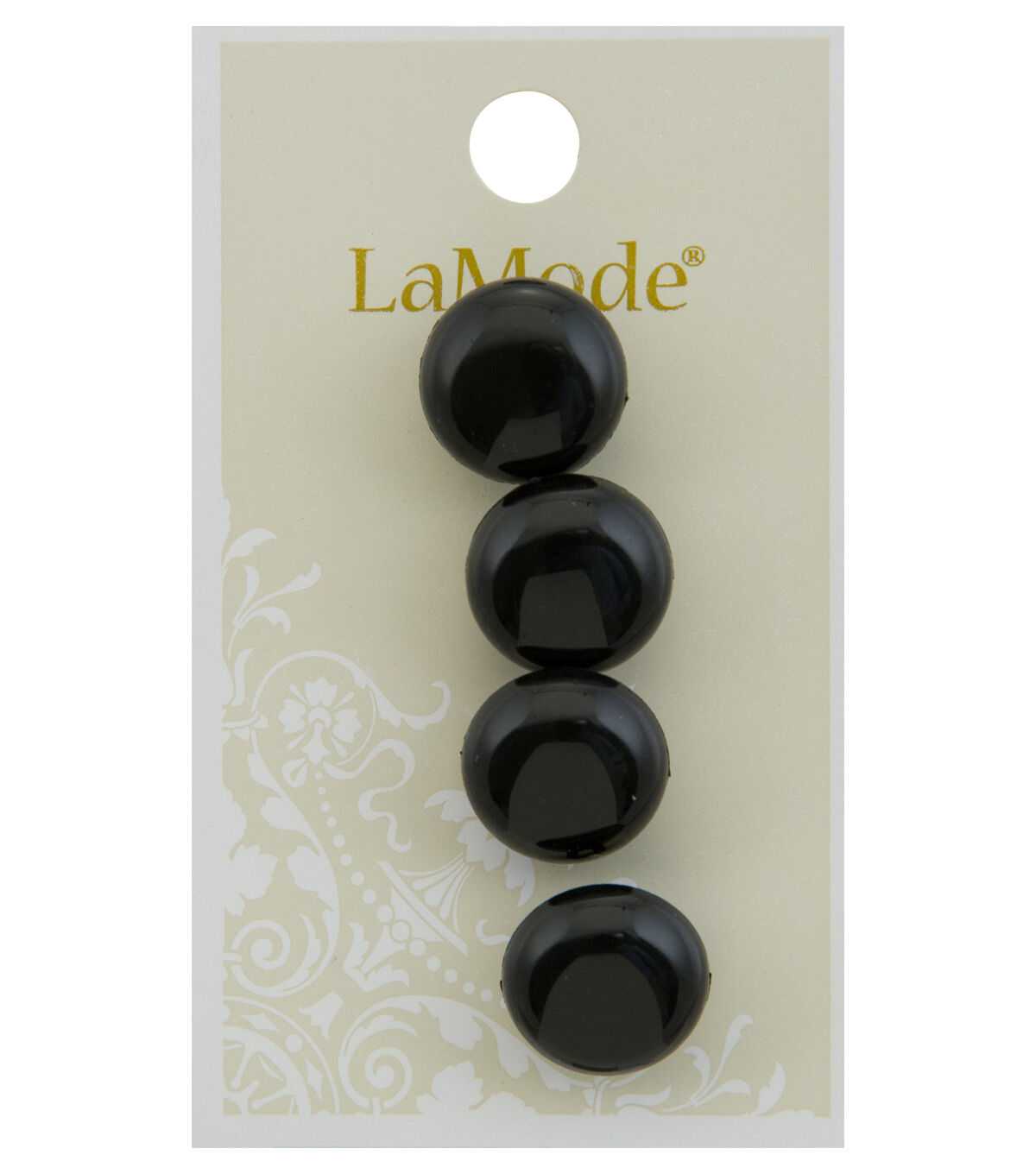 Use the LaMode Shank Buttons-Black to lend an elegant finishing touch to your sewing creations. These simple round buttons sport a black shade and will be perfect to use with skirts, tops, dresses, tees and more. Team them with buttons in contrasting hues for visual flair. This pack includes four shank buttons.