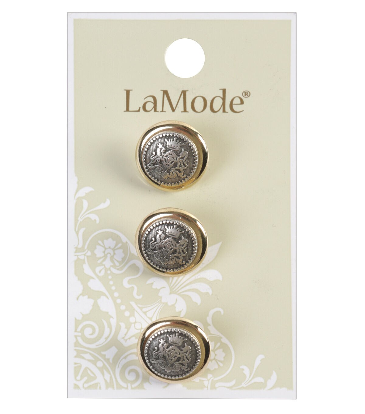 • La Mode 5/8" Gold & Silver Crested Shank Buttons 3pk