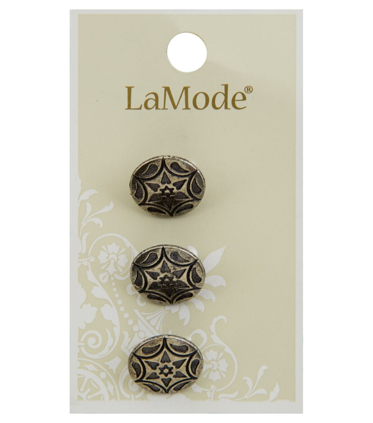 Add a vintage touch to your apparel projects using the LaMode Shank Buttons-Silver Floral. They sport a silver tone and an intricate pattern, and will be perfect for making your creations stylish. Use it on tops, shirts, skirts, jackets, coats and more. This pack contains three shank buttons.
