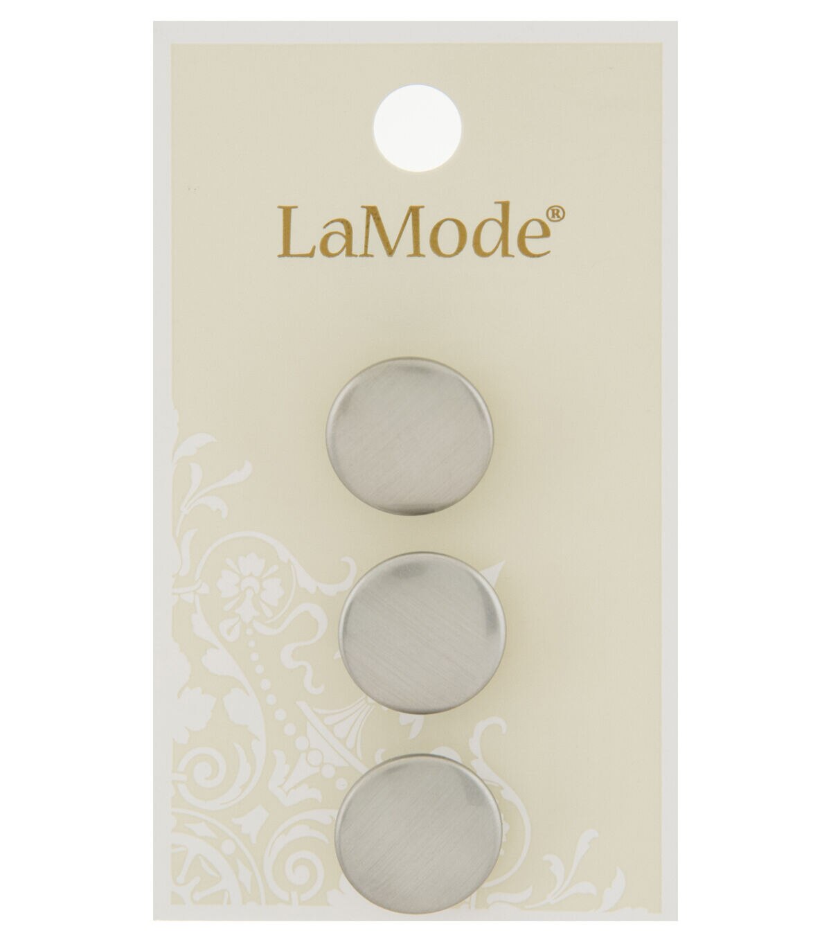 Simple yet pretty, the La Mode Shank Buttons-Silver will make a delightful addition to your collection. These silver-toned round buttons will be perfect for your handmade dresses, tops, shirts and more. You can use them for fastening or decorative purposes. This pack contains three buttons.