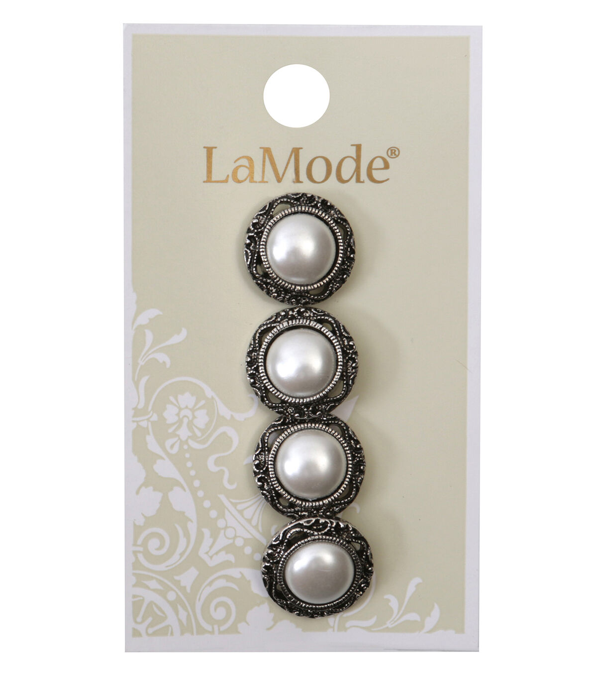 The La Mode Silver Shank Buttons with White Pearl will add a touch of antique charm to your creations. Bedecked with a faux pearl in the center and displaying an intricate design along the border, these buttons will make a unique addition to your sewing kit. They will be ideal for your DIY dresses and tops.