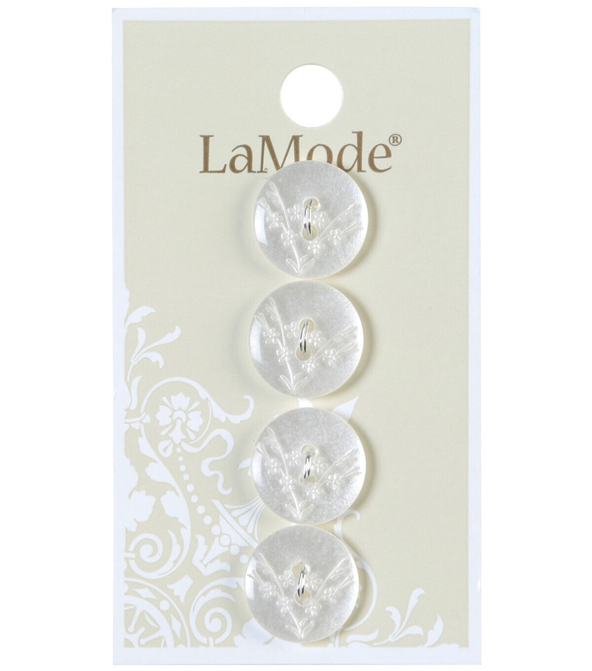 Finish your handmade sweater in style with the La Mode 2 Hole White Buttons With Etched Flowers. Sporting a white shade and etched floral design, these buttons are sure to prettify your handmade creations. You can also add them to DIY dresses, tops and more for decorative purposes.